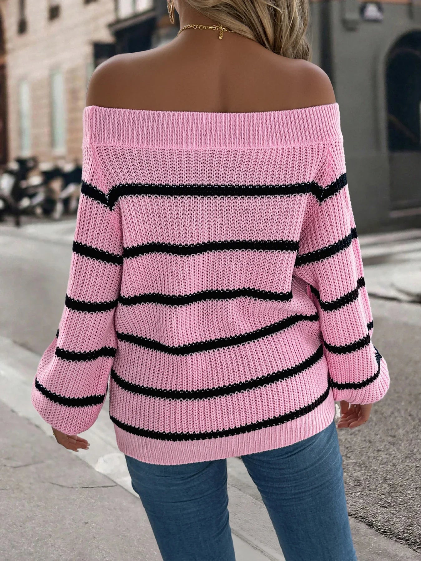 Plecu bez piedurknēm svītrainais laternu piedurkņu džemperis