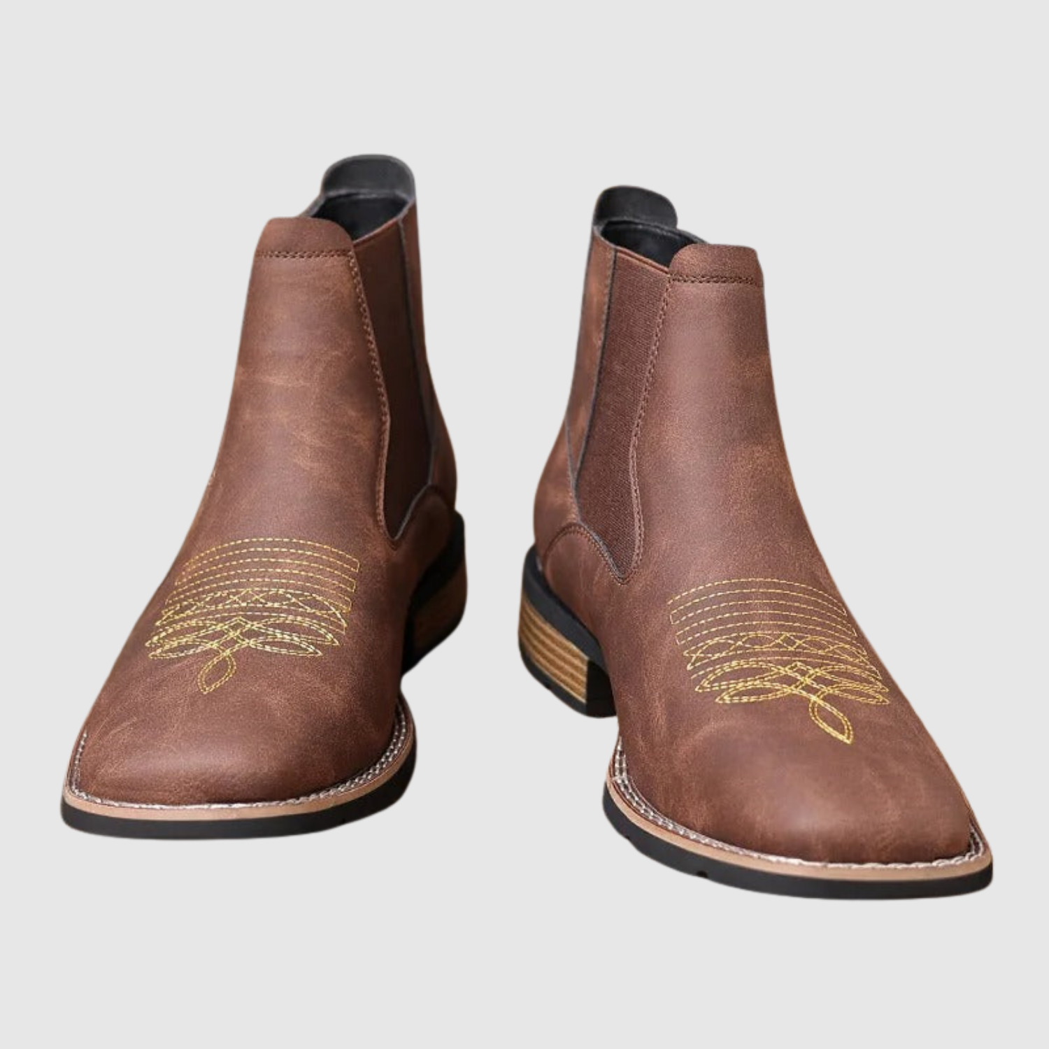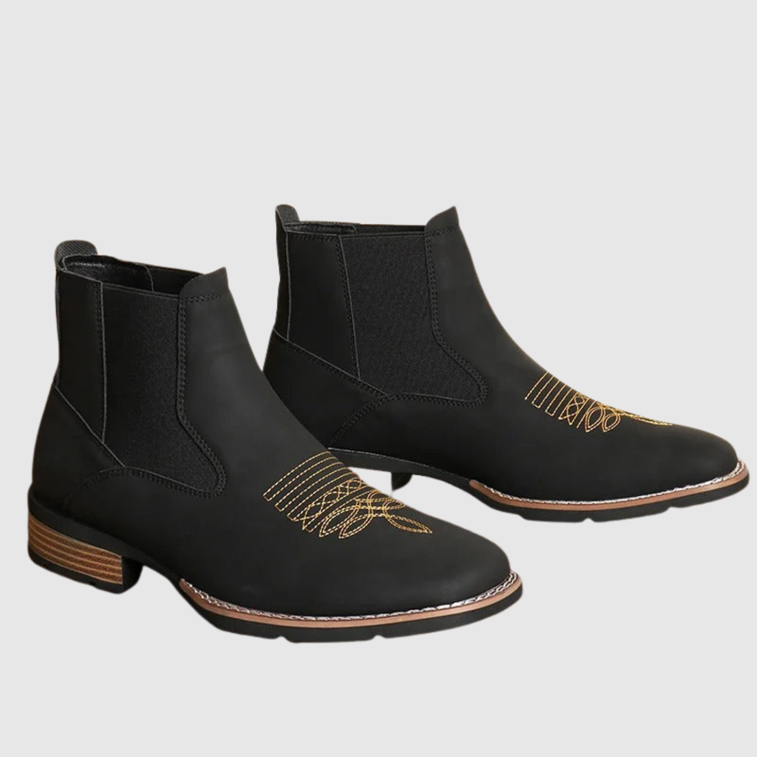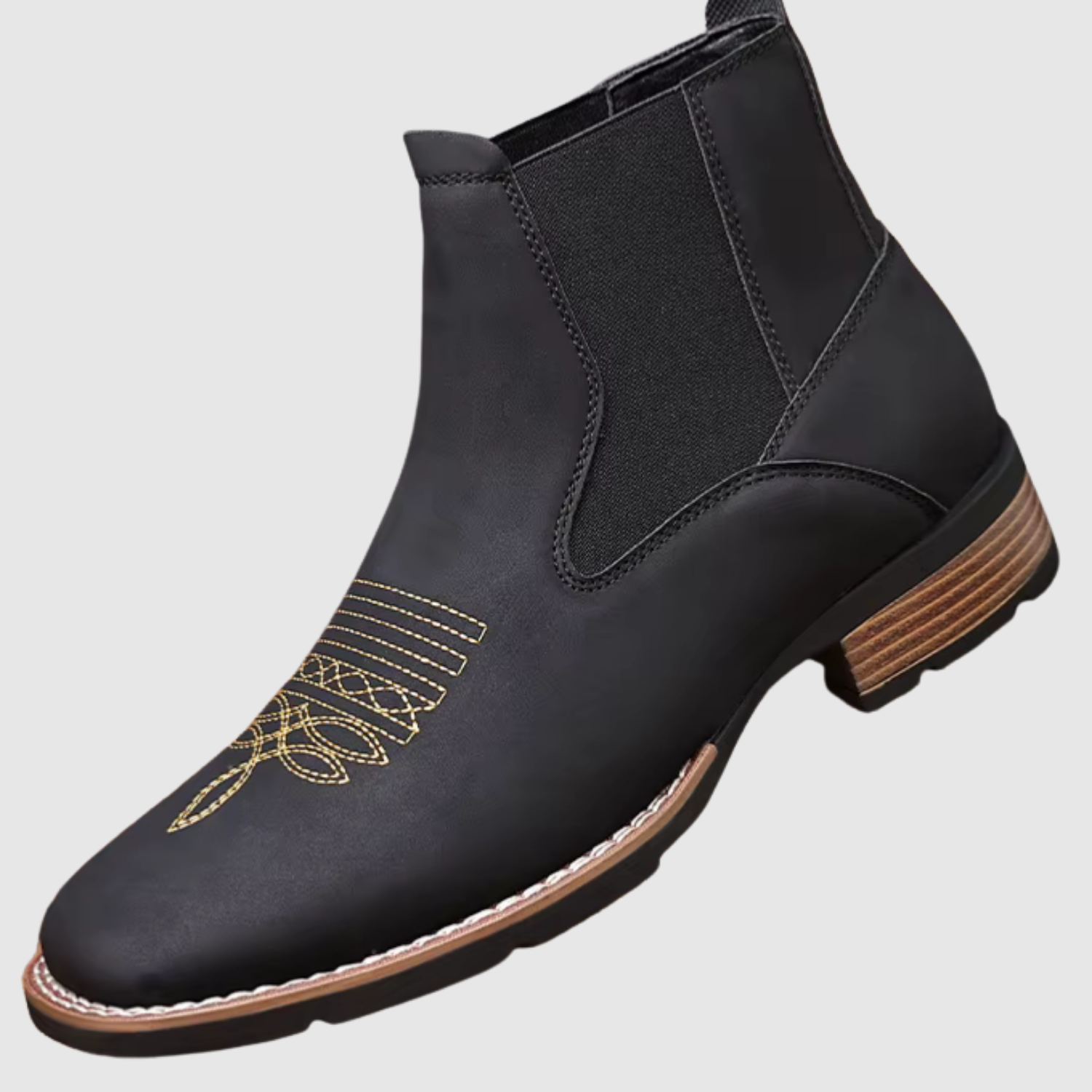Šie ādas Čelsijas zābaki apvieno klasisku izskatu ar elegantiem izšuvumiem augšdaļā. Elastīgais sānu panelis padara tos viegli uzvelkamus un novilkamus, kamēr stabilā zole nodrošina komfortu visā dienā. Izteiksmīgs izvēle tev, kurš vēlas izcelties.