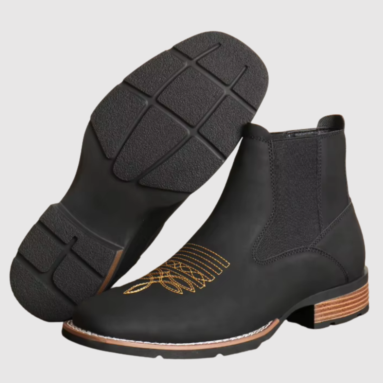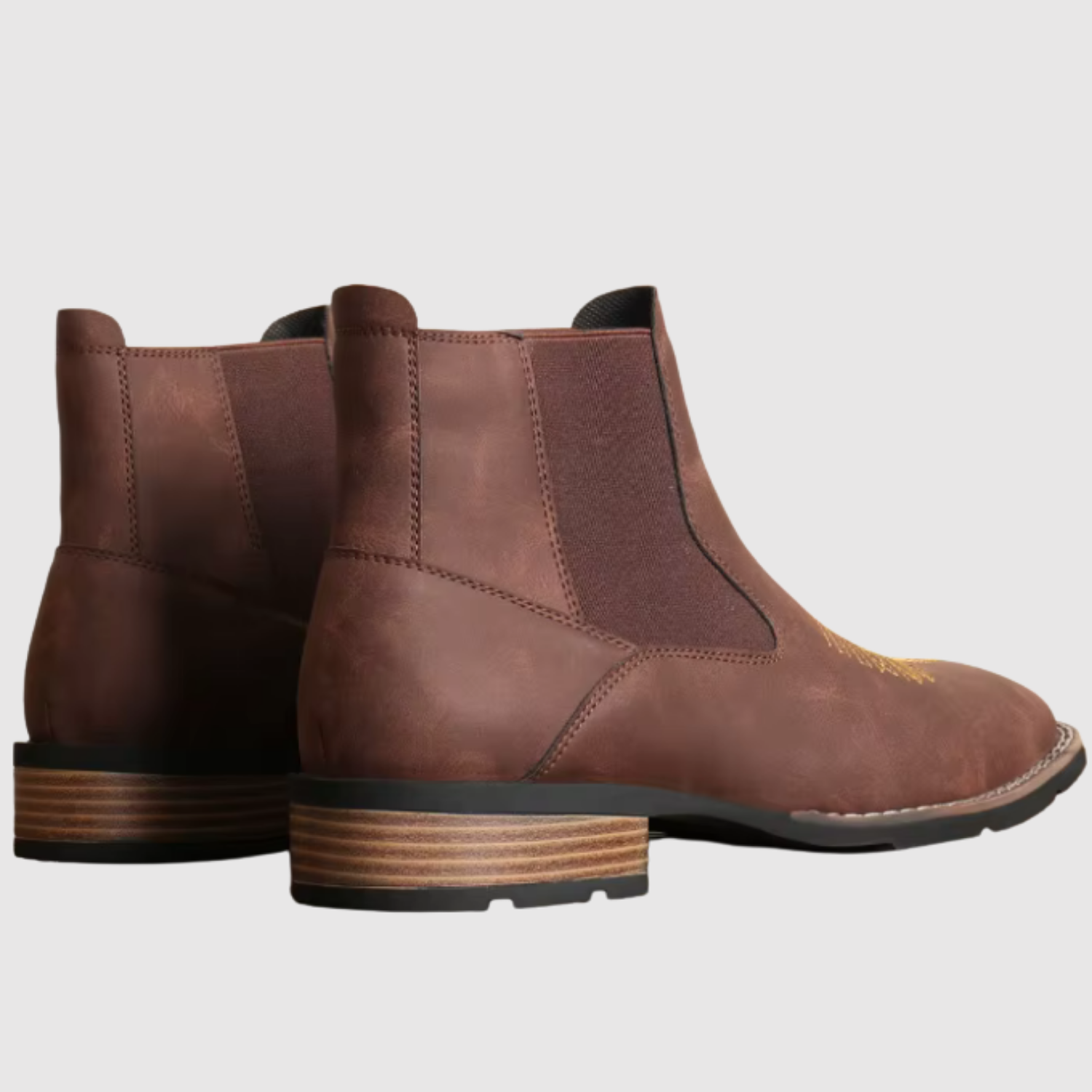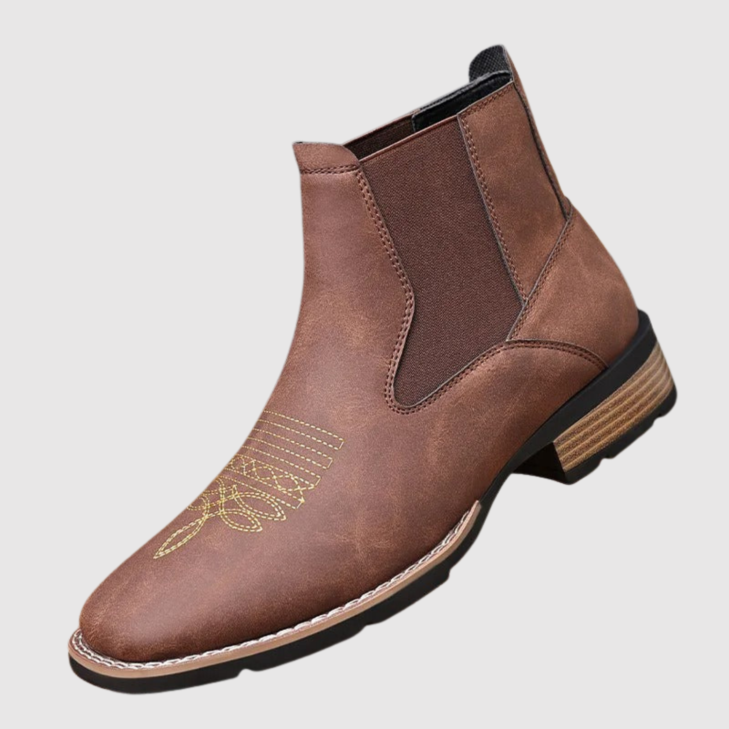 Šie ādas Čelsijas zābaki apvieno klasisku izskatu ar elegantiem izšuvumiem augšdaļā. Elastīgais sānu panelis padara tos viegli uzvelkamus un novilkamus, kamēr stabilā zole nodrošina komfortu visā dienā. Izteiksmīgs izvēle tev, kurš vēlas izcelties.