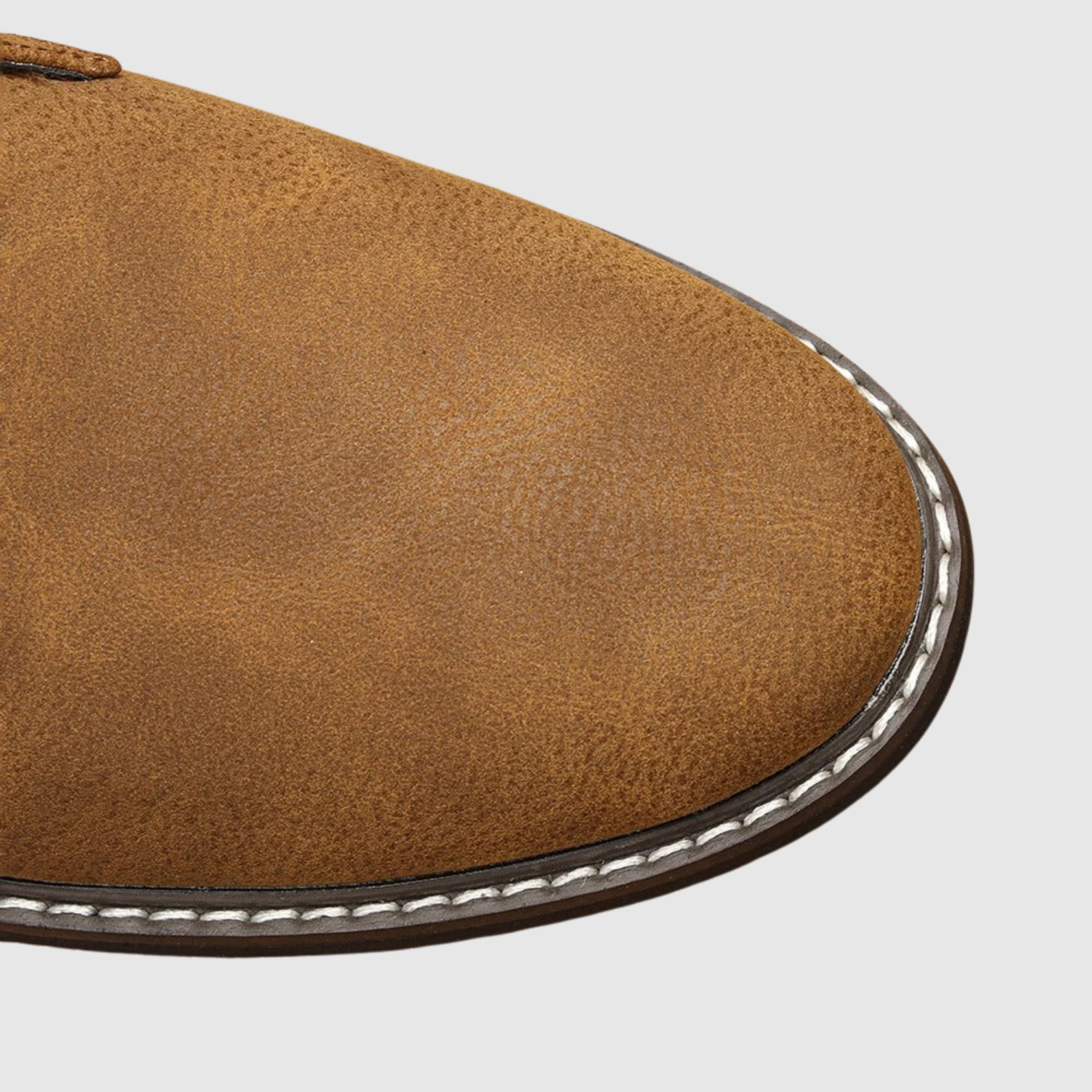 Šie gaišā zamšā Chukka zābaki nodrošina brīvu, bet elegantu izskatu. Vieglā zole un mīkstie materiāli garantē komfortu visu dienu, savukārt vienkāršais dizains padara tos viegli saskaņojamus ar džinsiem un elegantiem apģērbiem.
