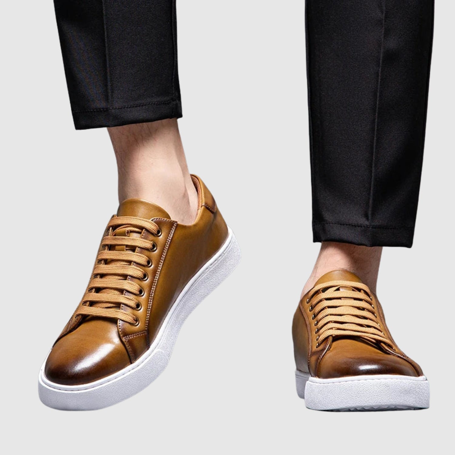 Mūsdienīgajam vīrietim, kurš meklē stilu, neupurējot komfortu, šie ādas sporta apavi ir ideāla izvēle. Izstrādāti, lai saskanētu ar jebkuru apģērbu, tie piedāvā tīru un izsmalcinātu izskatu ar mīkstu un drošu soli. Ideāli ikdienas rutīnai, neformālām izklaidēm vai pat rūpīgākam izskatam.