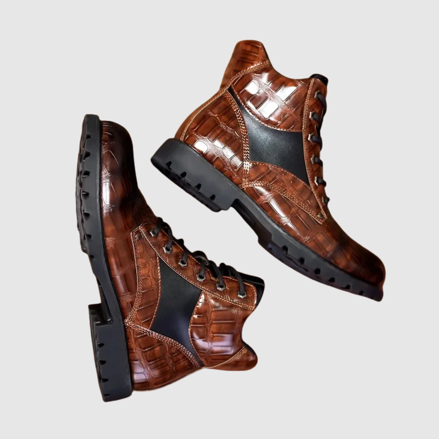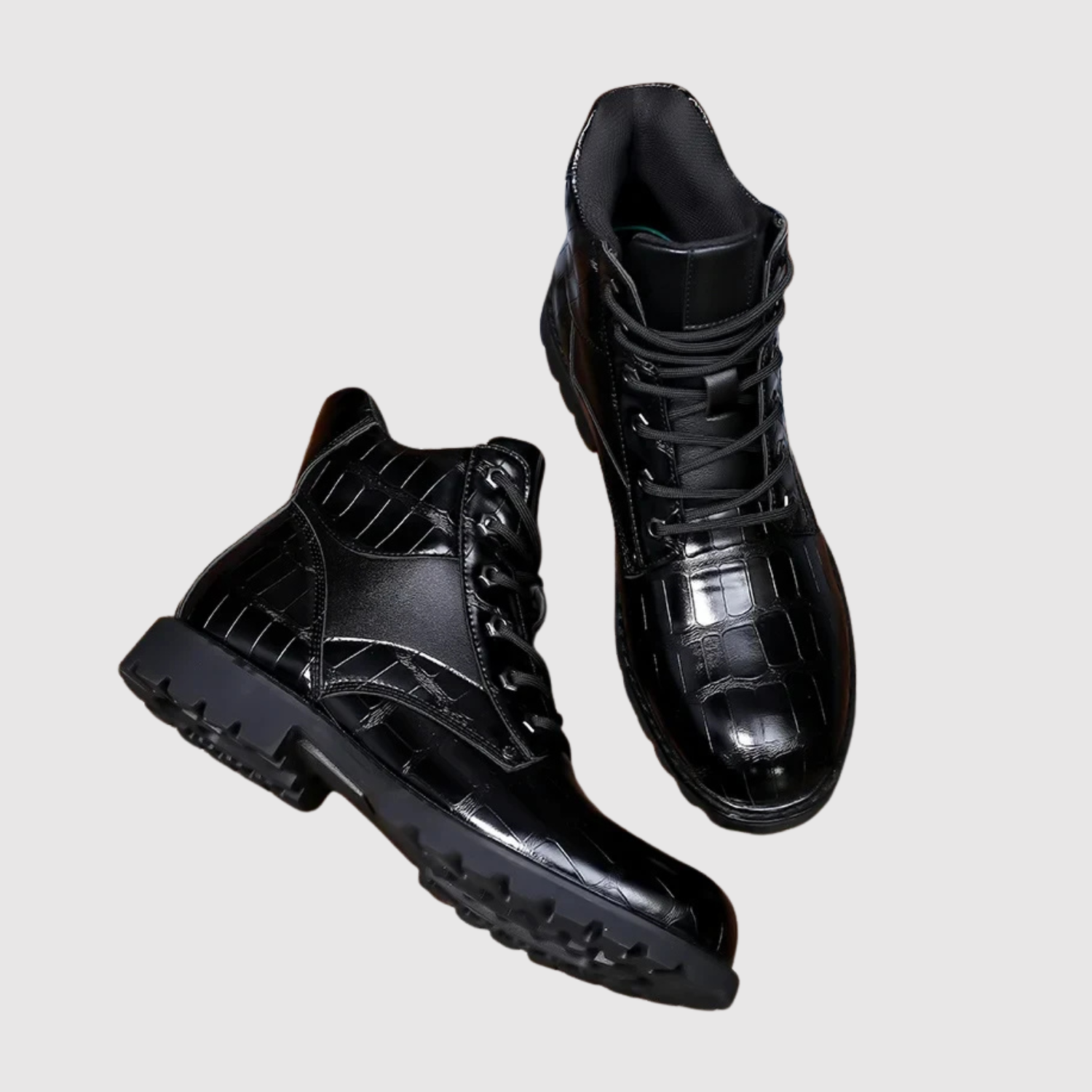 Henrik zābaki ir radīti mūsdienu vīrietim, kurš vēlas izteiksmīgu izskatu, neupurējot komfortu. Izgatavoti no reljefa ādas ar spēcīgu gumijas zoli, tie apvieno vīrišķīgu raksturu ar praktisku lietojamību. Sīki izstrādātā virsma sniedz greznu izskatu, kamēr polsterētā iekšzole un augstā potītes atbalsta nodrošina stabilitāti visā dienā.