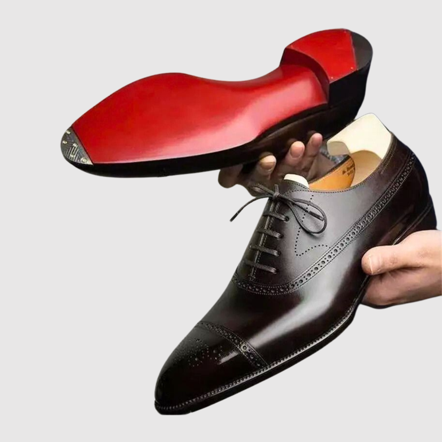 Henrik – Klasiskas Ādas Kurpes ar Sarkanu Zoli