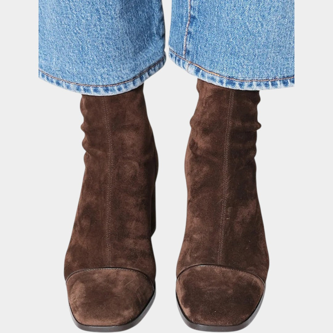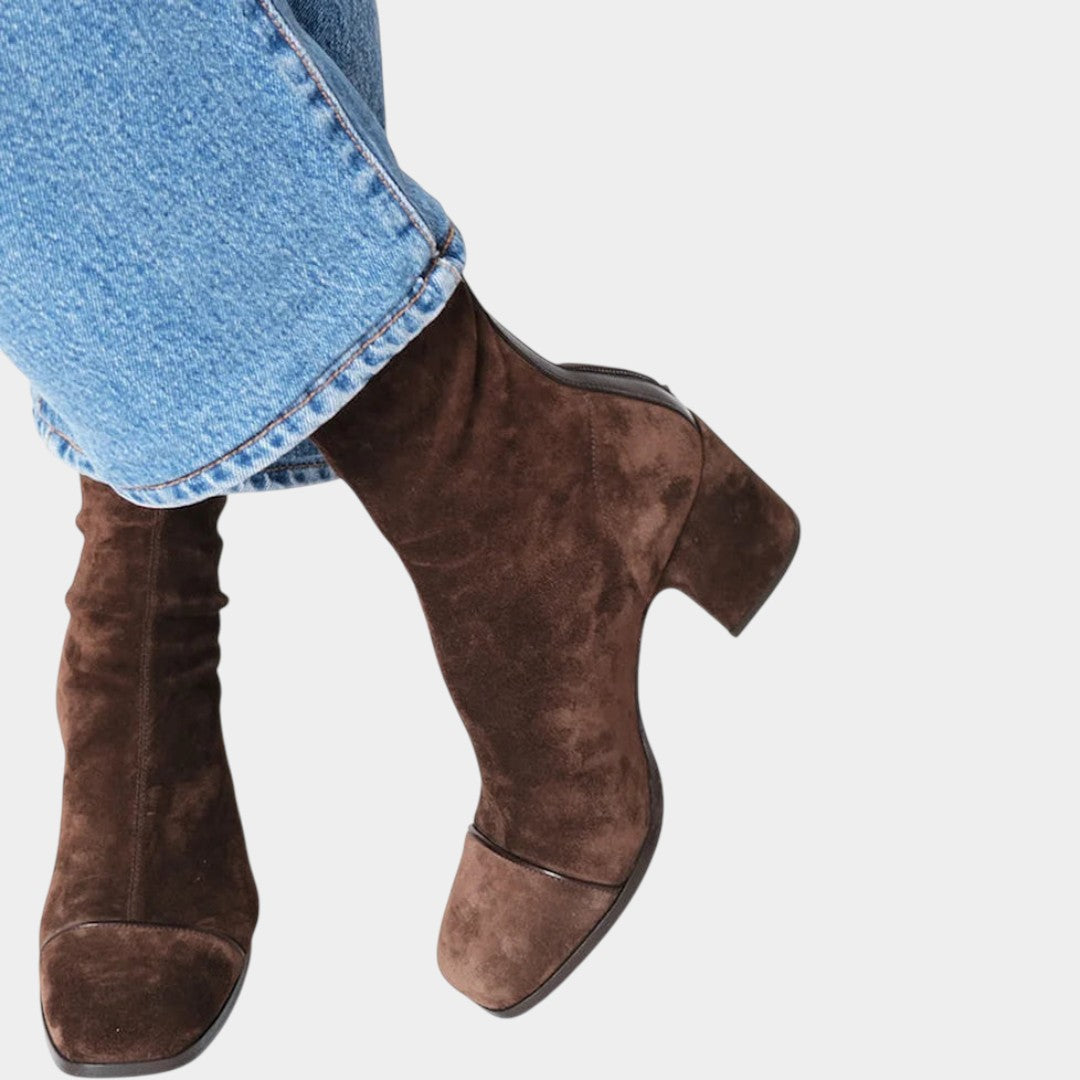 Liene kvadrātveida pirksta zābaki ar papēdi ir mūsu izsmalcinātais pamatelements daudzpusīgai elegancijai. Ar modernu kvadrātveida pirkstu un bloku papēdi tie līdzsvaro izsmalcinātību ar komfortu. Ideāli piemēroti valkāšanai ar džinsiem, svārkiem vai kleitām — šie zābaki viegli pāriet no dienas uz vakaru.