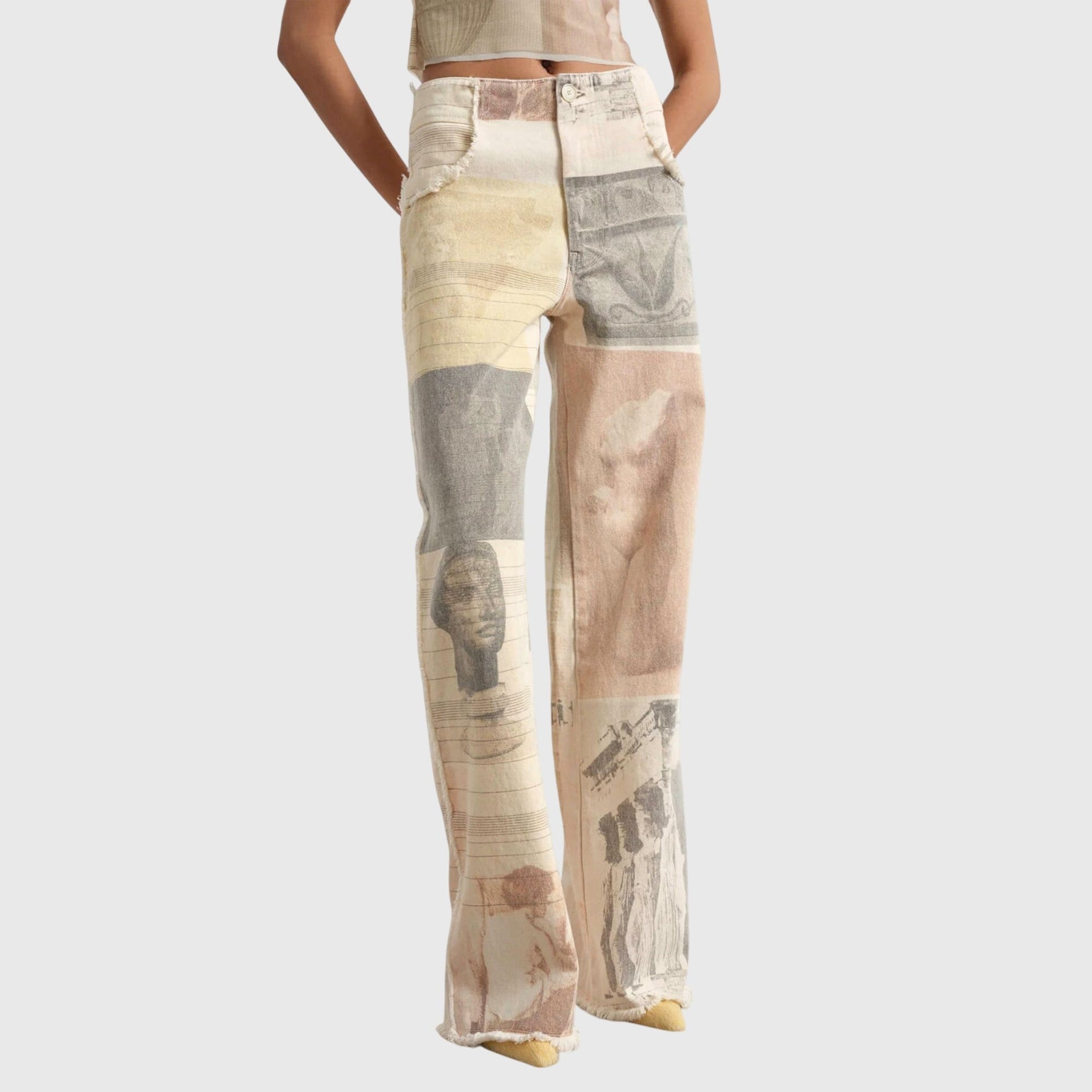 Atklājiet Alma - Platas Džinses, kur mūsdienu dizains saskaras ar nepārspējamu komfortu, ideāli piemērotas, lai uzlabotu jūsu ikdienas stilu.