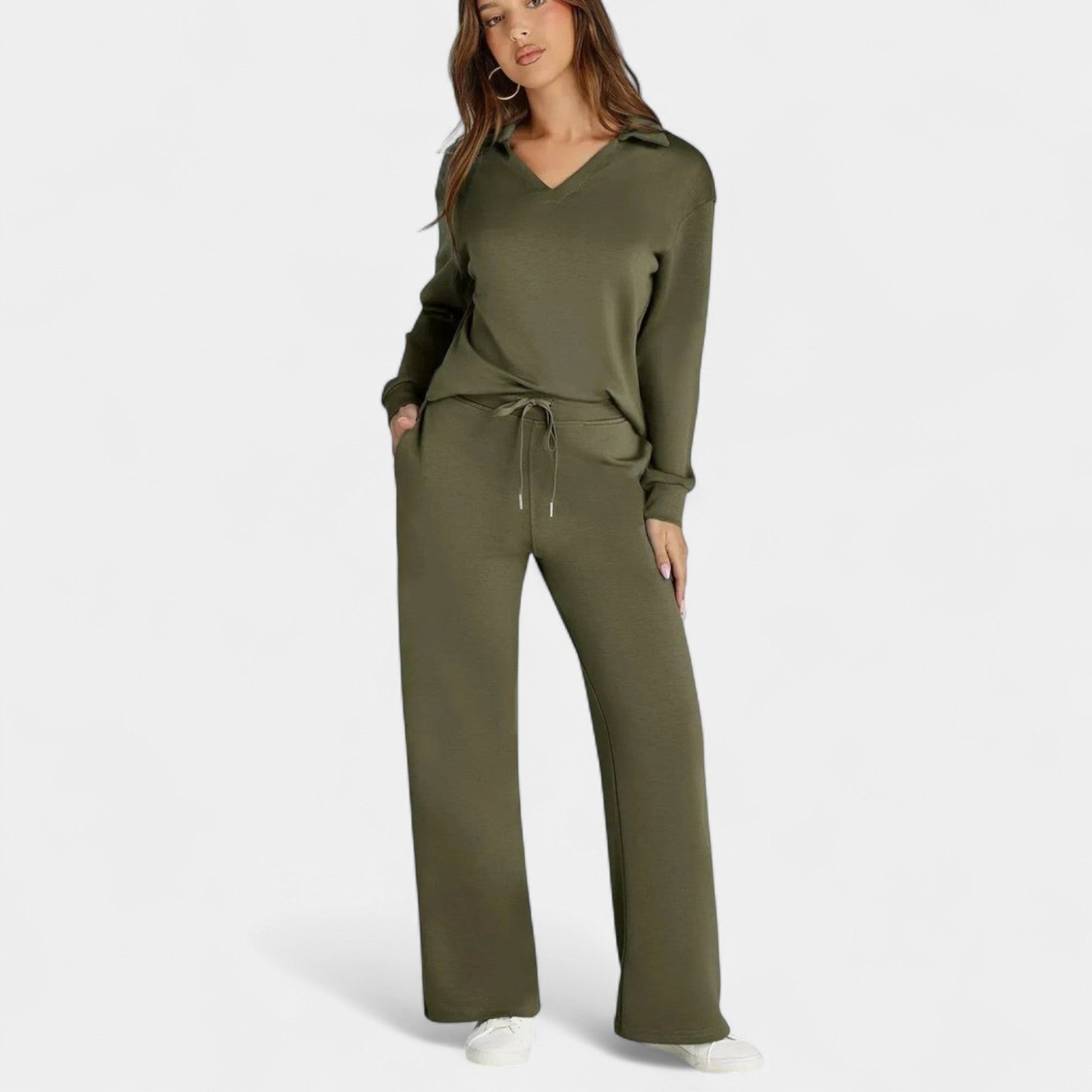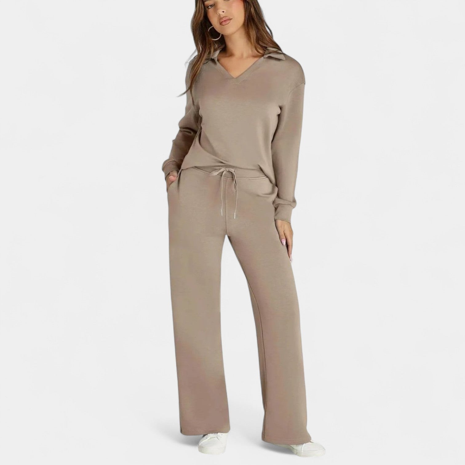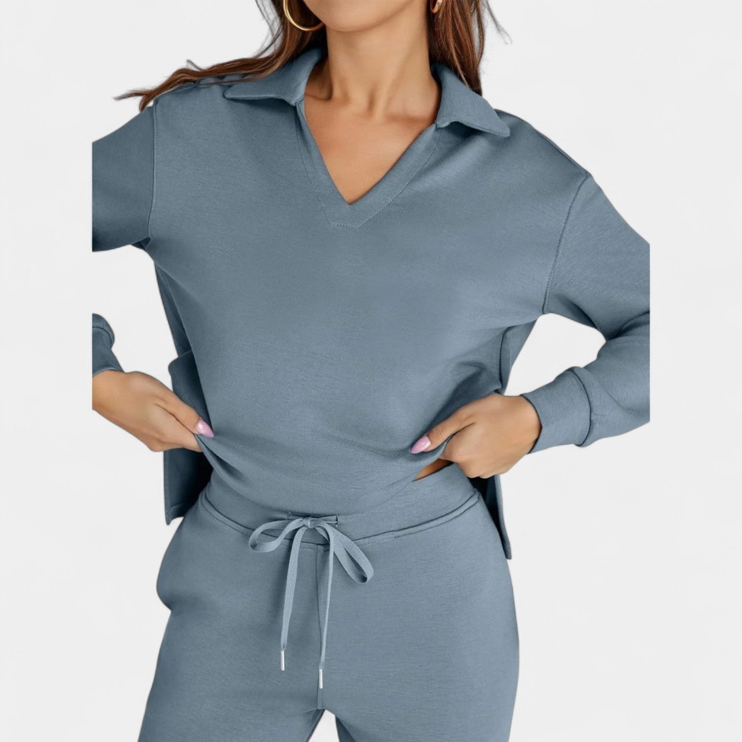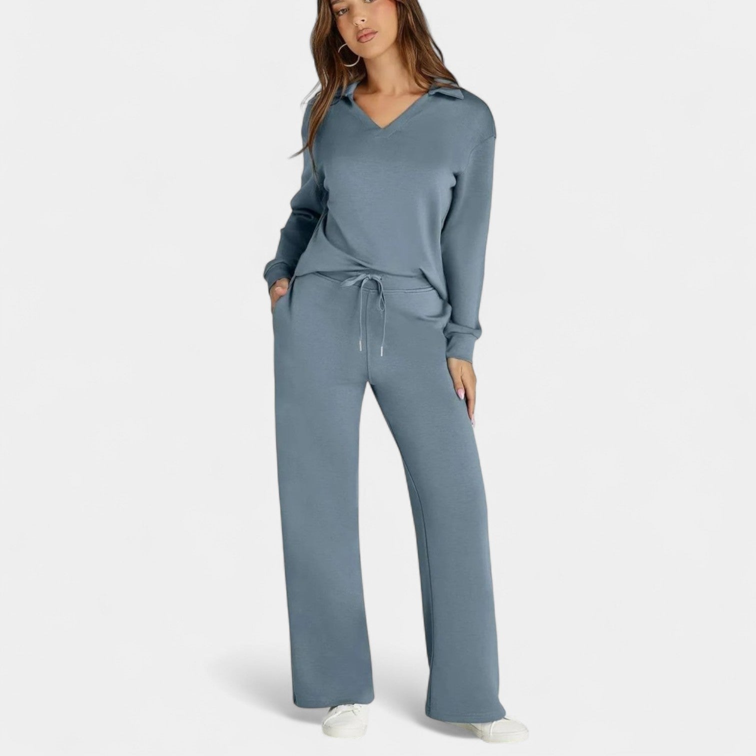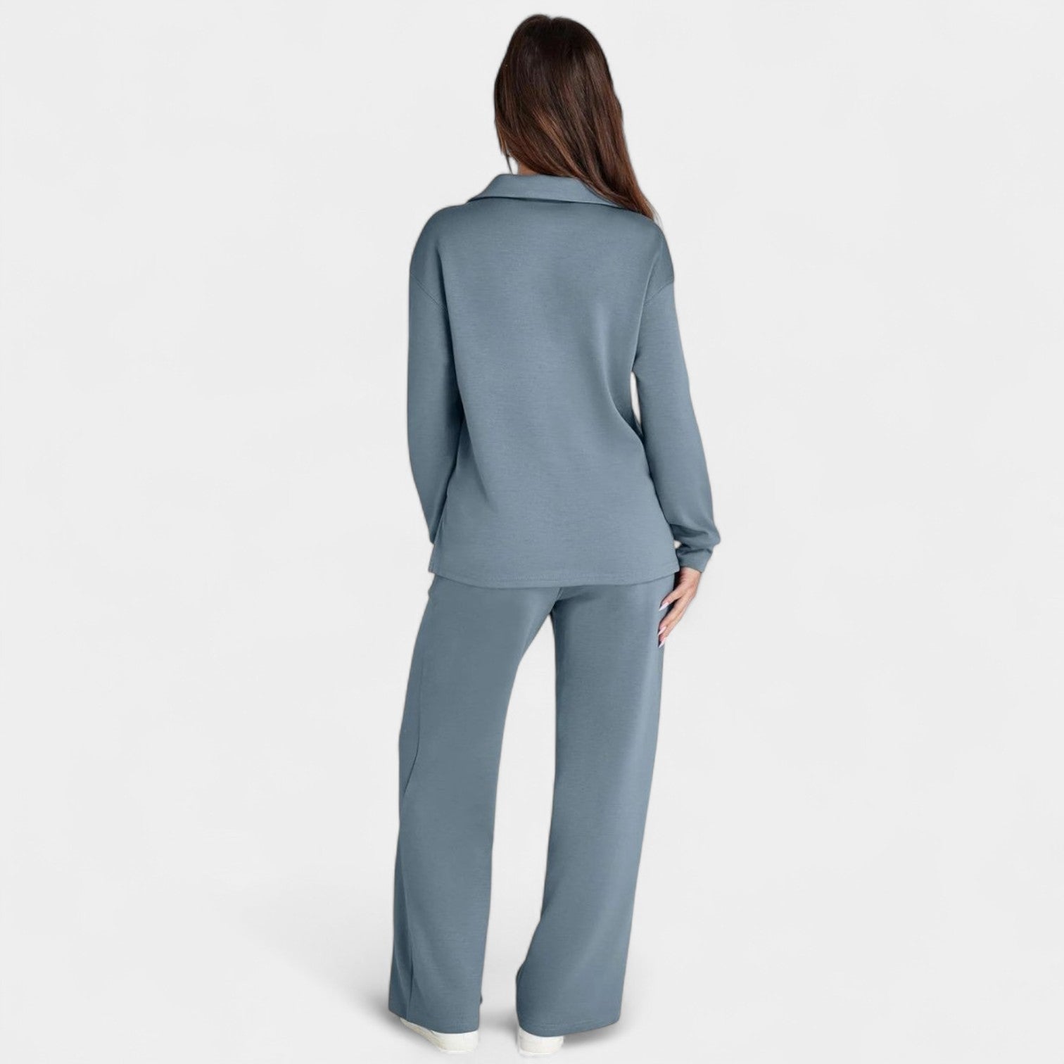 Komplekts Jitka apvieno stilu un komfortu perfektā divdaļīgā tērpā. Tas ir viegls, daudzfunkcionāls un izstrādāts, lai sniegtu jums pārliecību – neatkarīgi no tā, vai esat ceļā, dodaties uz kafiju ar draugiem vai izbaudāt mierīgu dienu mājās.