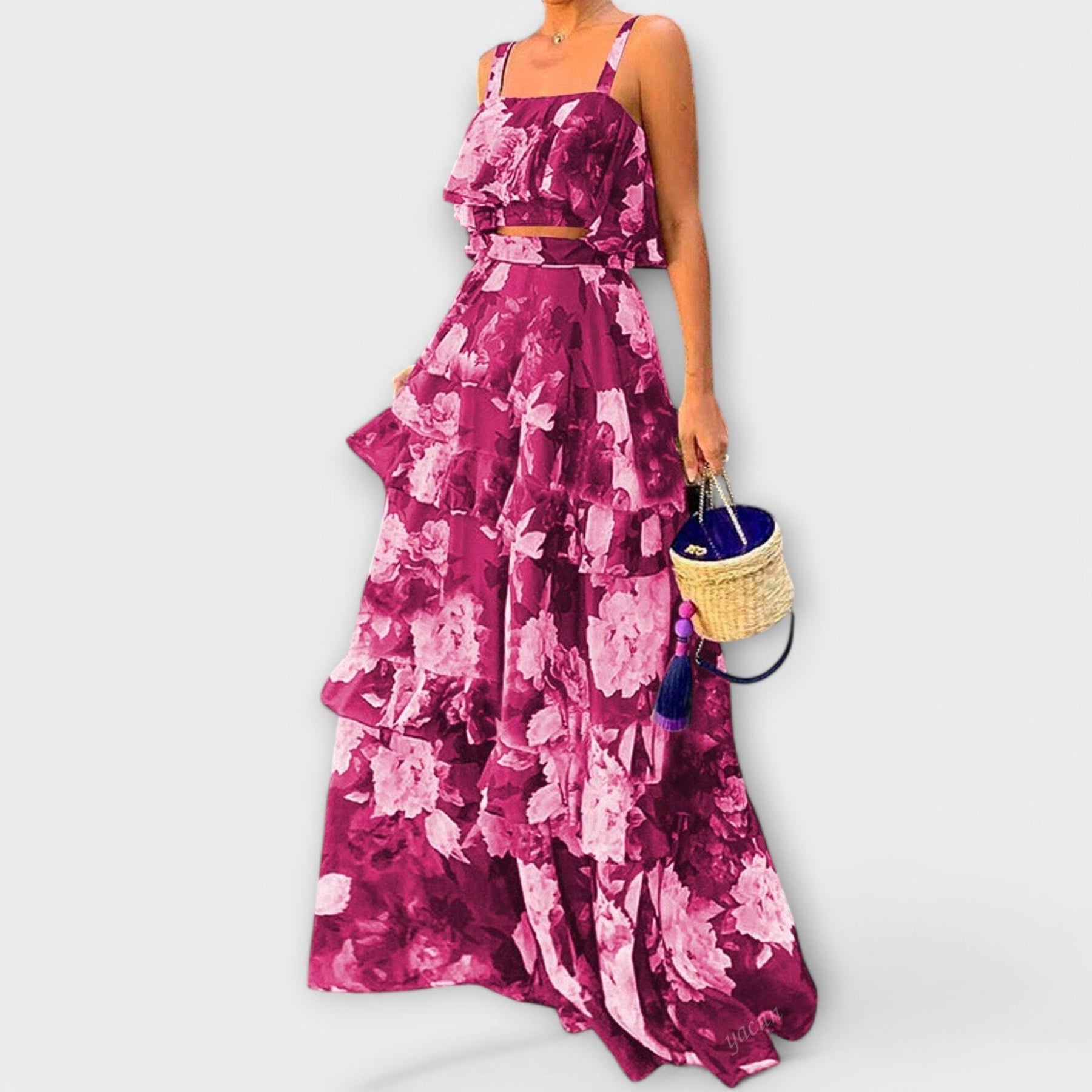 Šī boho stilā iedvesmotā kleita ar ziedu rakstu ir ideāli piemērota jebkurai gadījumam. Spageti siksnas nodrošina sievišķīgu izskatu, kamēr parasta piegriezuma un neelastīgs audums garantē optimālu komfortu.