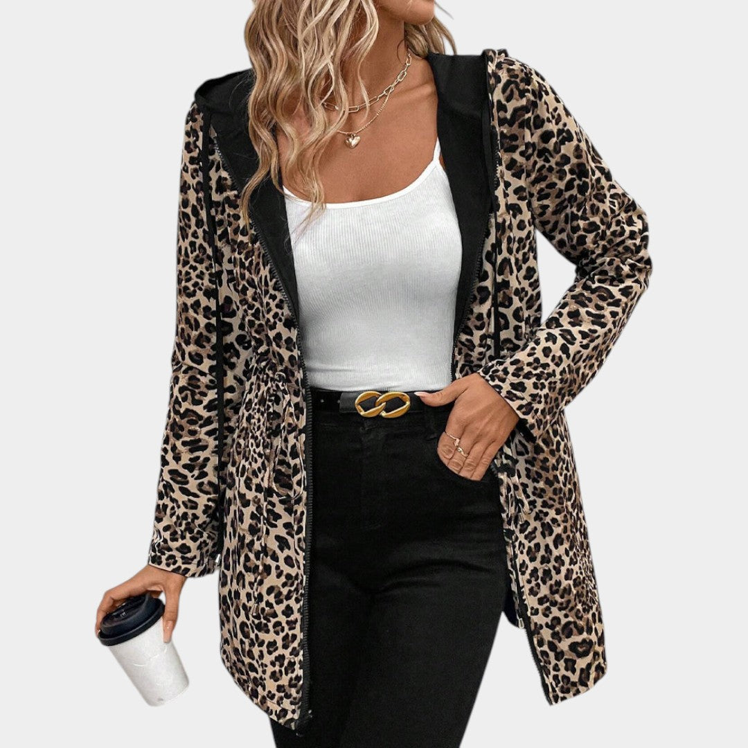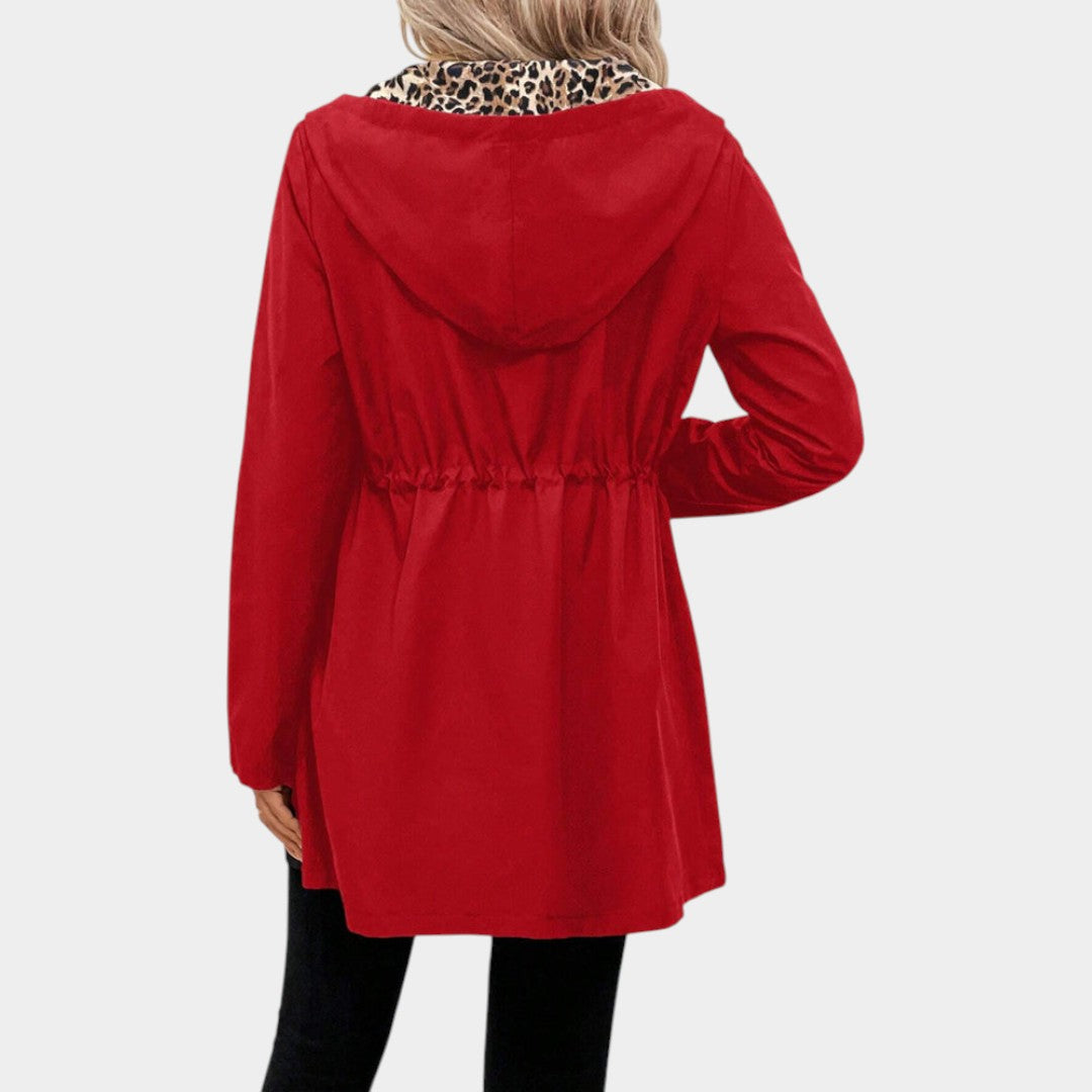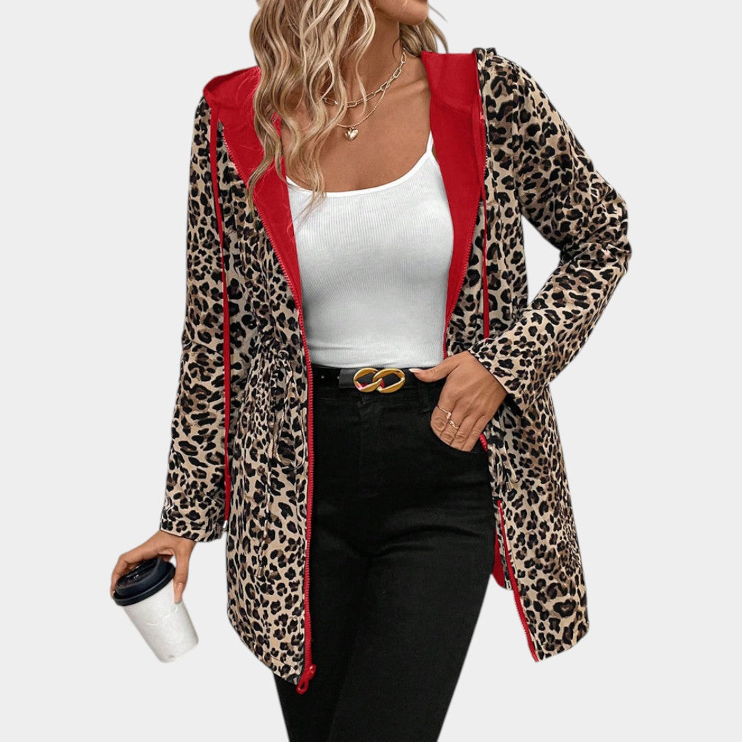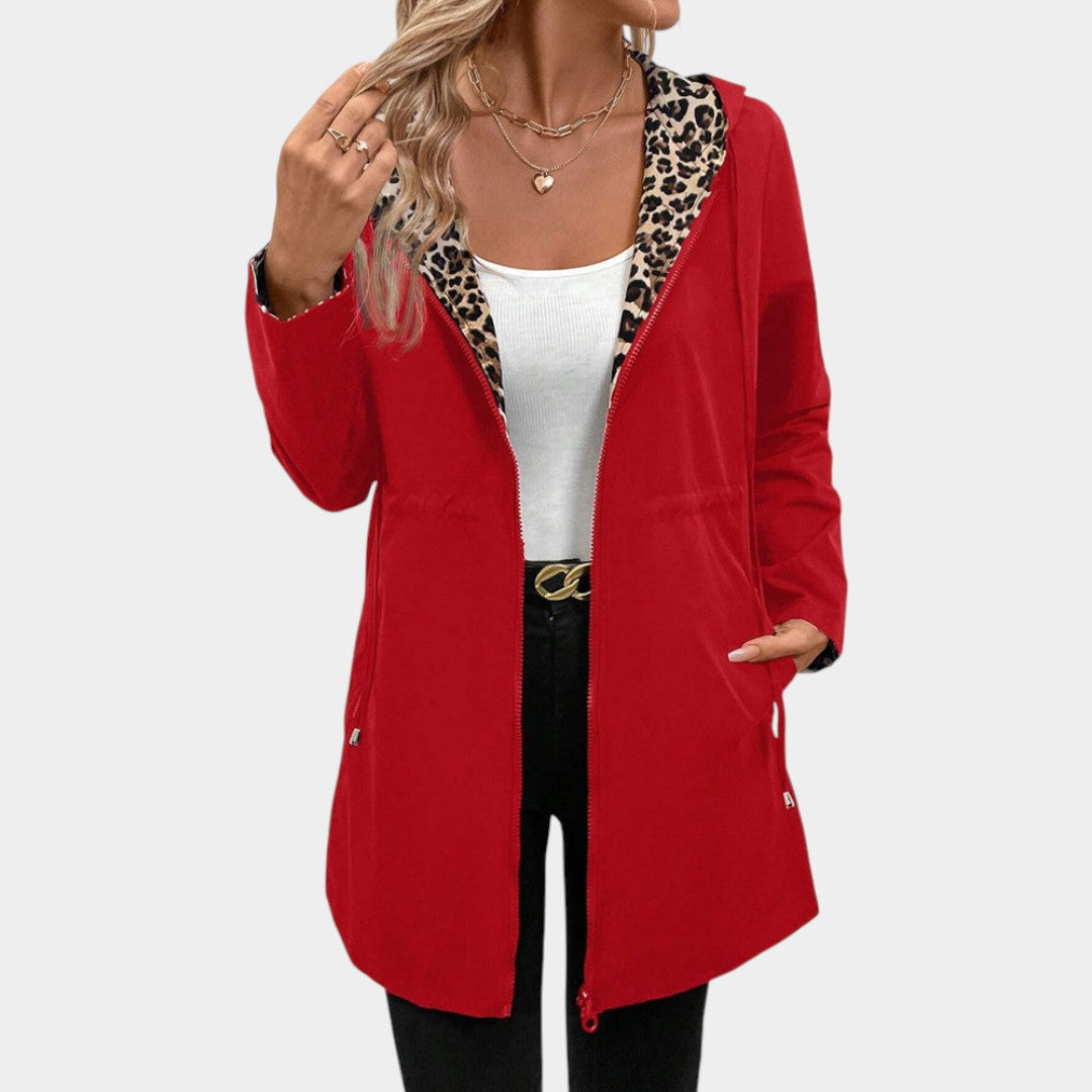 Elīna divpusējā jaka apvieno pārliecinošu stilu ar praktisku eleganci. Vienā pusē – klasiska, izteiksmīga sarkanā krāsa, kas piešķir tērpam enerģiju un sievišķību, otrā – moderns dzīvnieku raksta dizains drosmīgam un pārliecinātam tēlam. Šī jaka ir ideāla izvēle sievietei, kura vēlas izcelties, nezaudējot komfortu un daudzpusību.