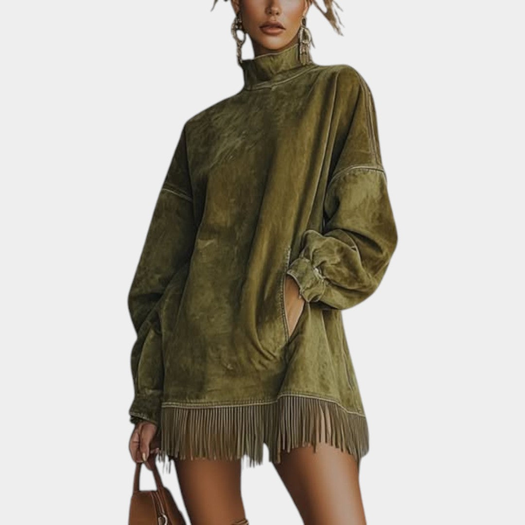Elza – Mīksta un šarmanta zamšādas kleita ar frīngēm