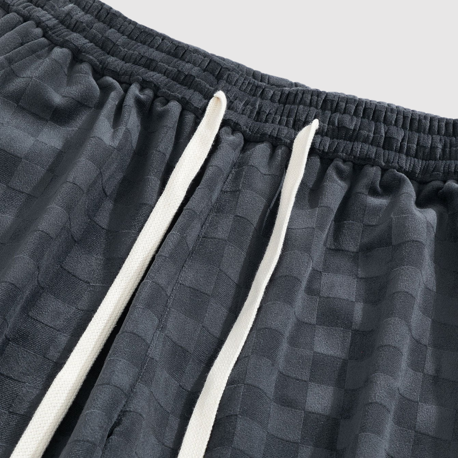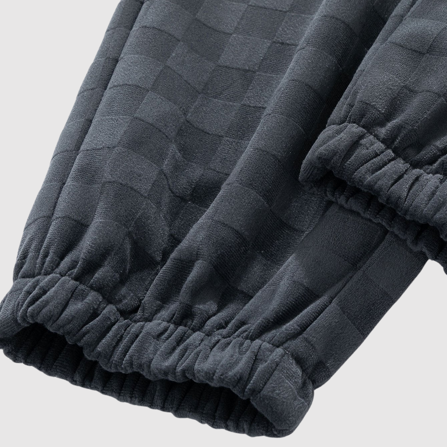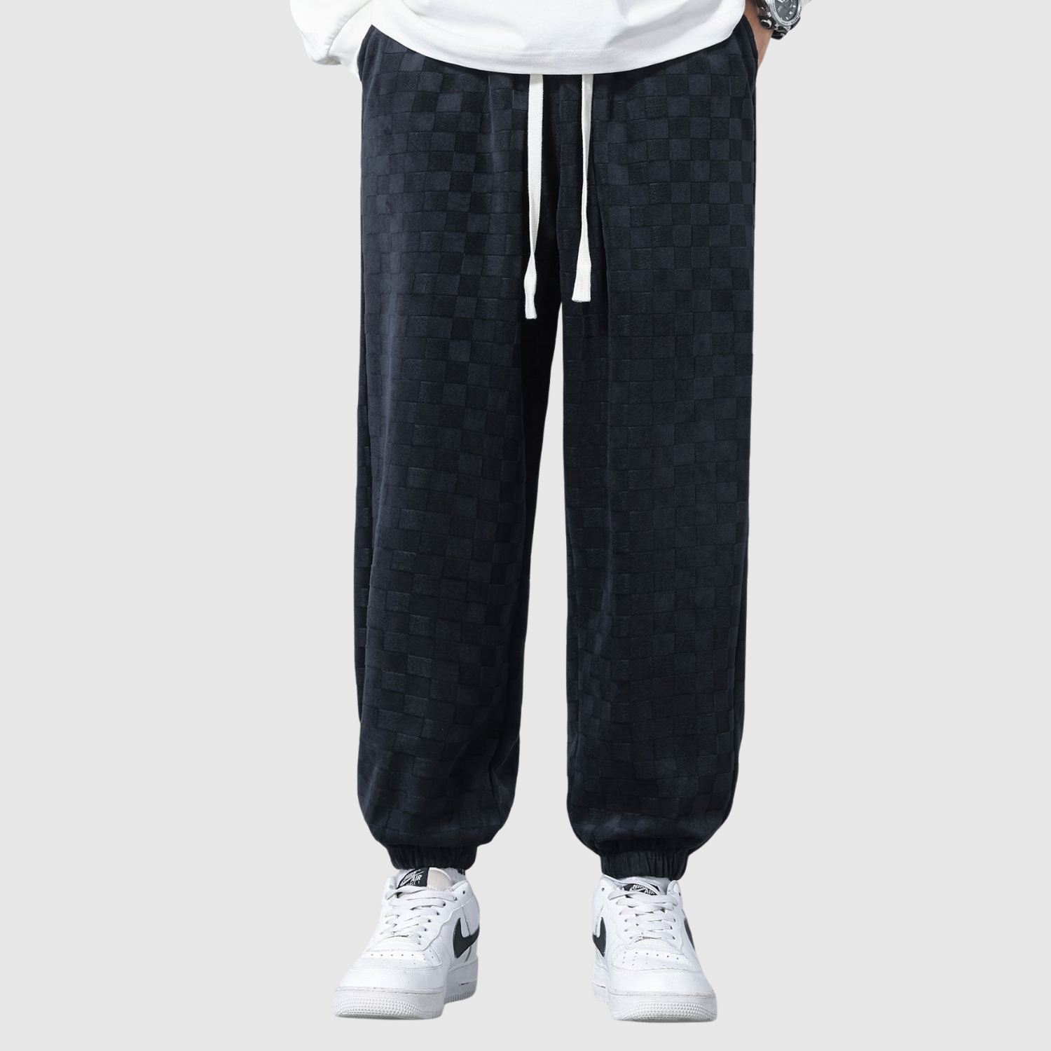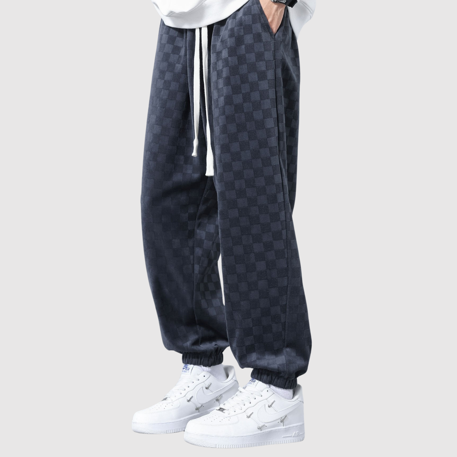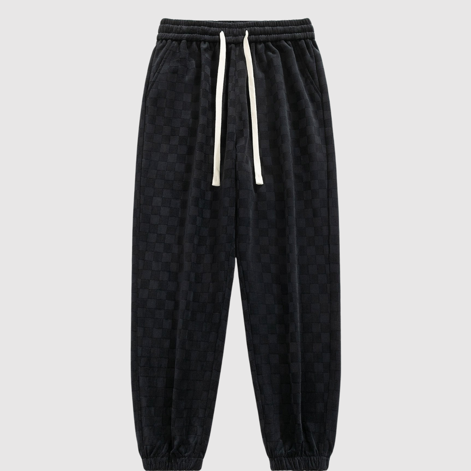 Šie joggeri izceļas ar savu diskrēto rūtaino rakstu, kas piešķir sofistiskētu pieskārienu citādi brīvai stilam. Ideāli ikdienas lietošanai un streetwear, ar elastīgu jostu un auklu maksimālam komfortam.