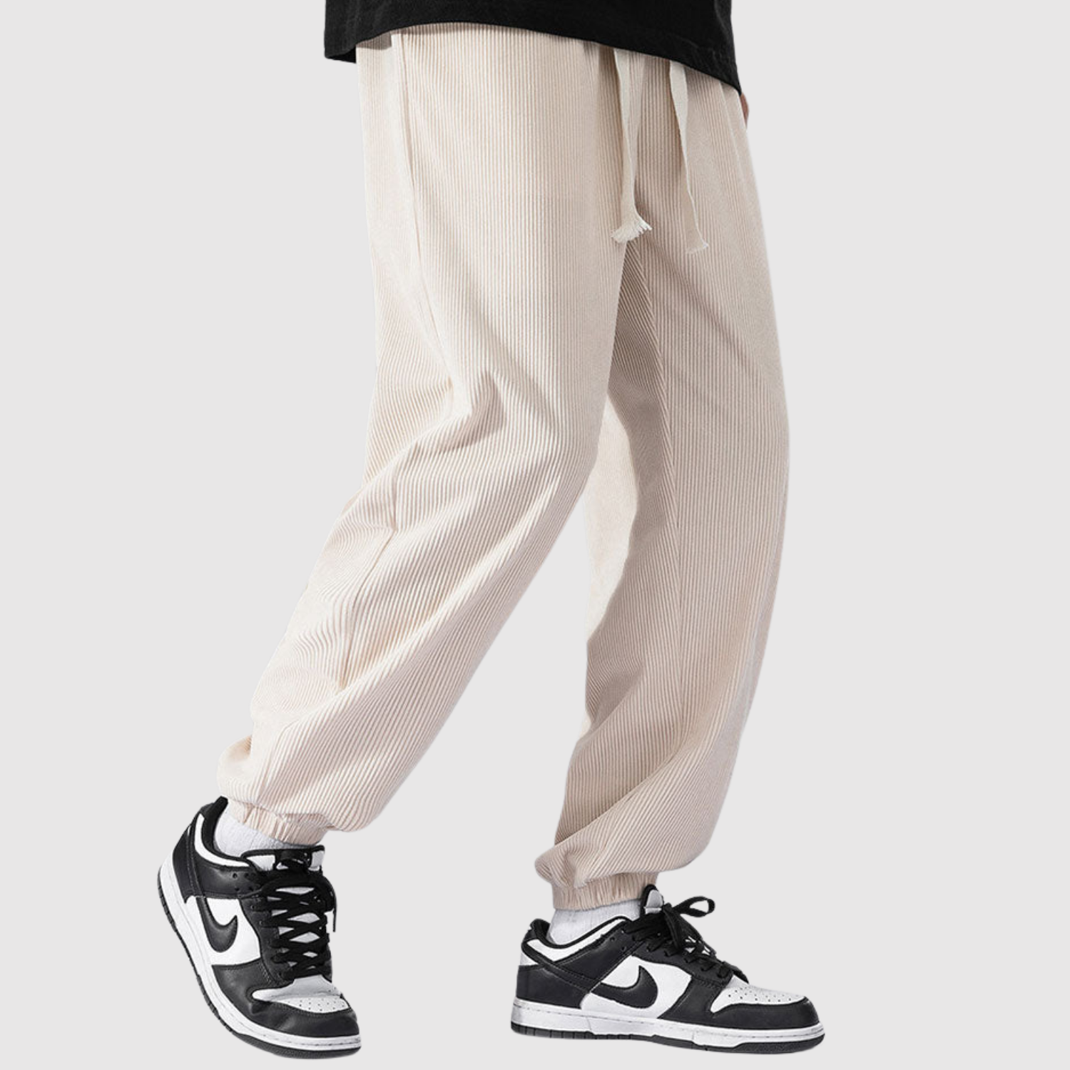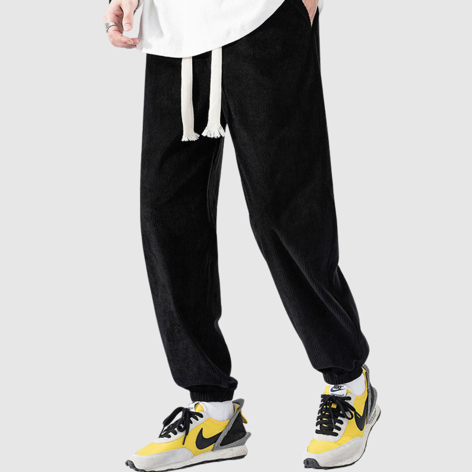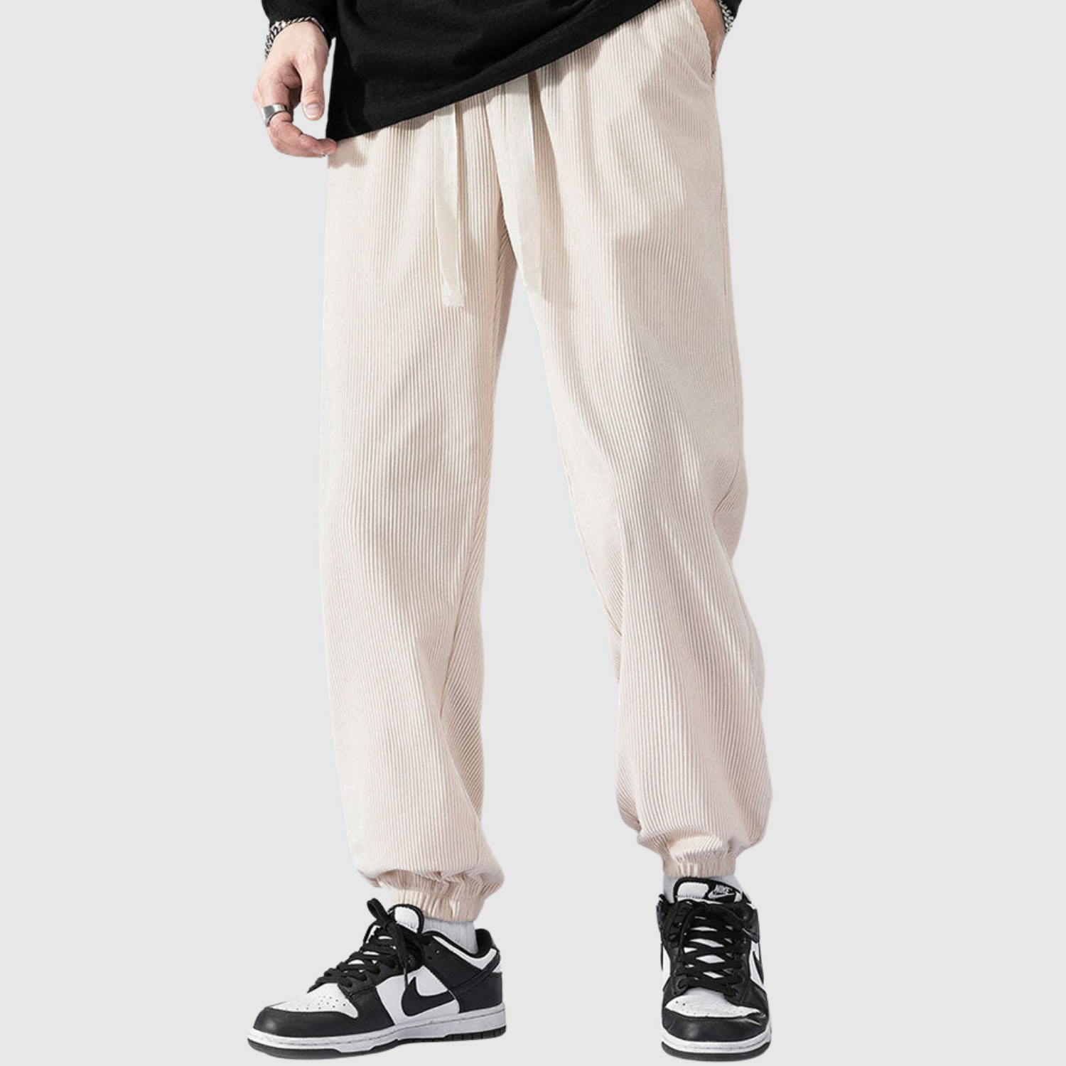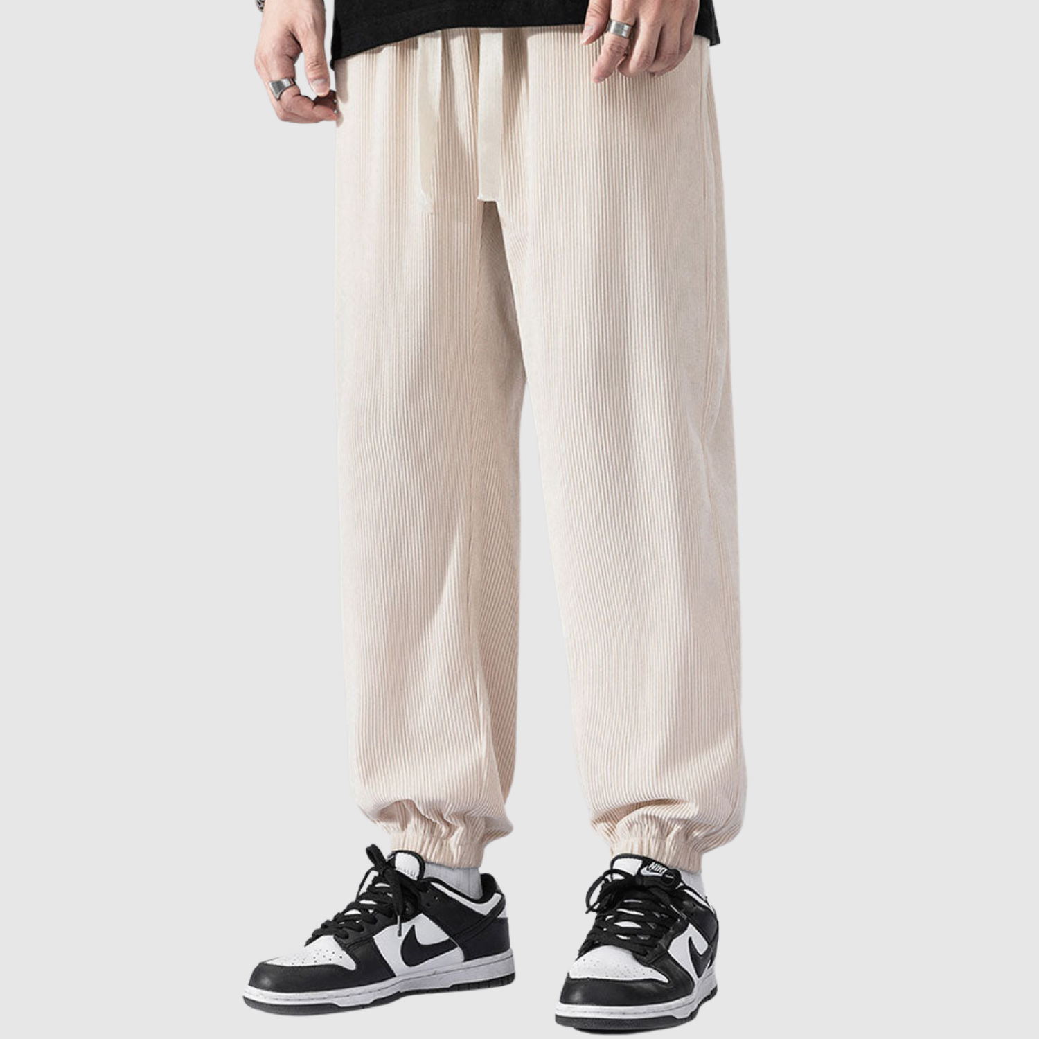 Šīs kargo bikses no samta apvieno modernu izskatu ar mīkstu tekstūru. Materiāls nodrošina gan komfortu, gan izturību, kamēr elastīgā josta garantē elastīgu piegriezumu ikdienas lietošanai.