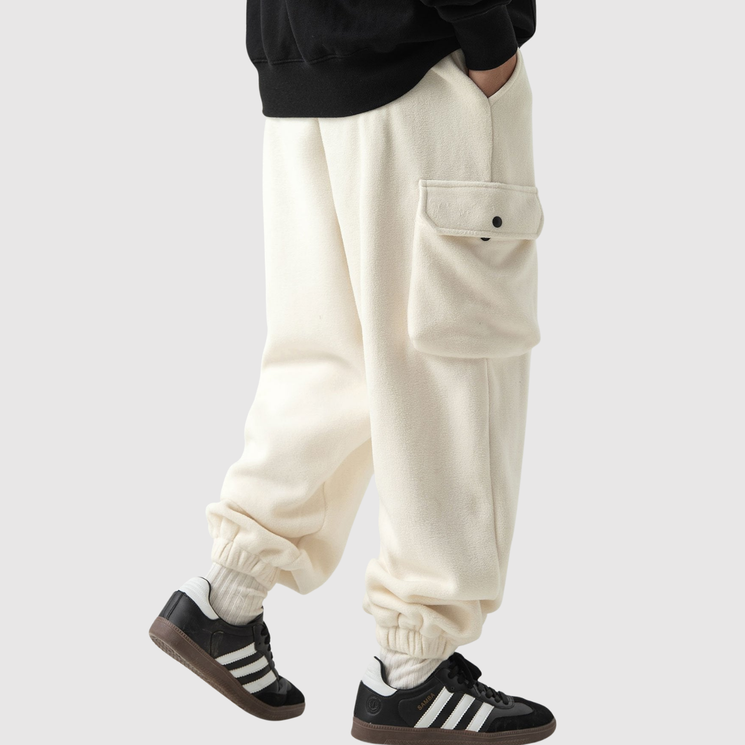 Šīs treniņu bikses cargo stilā apvieno funkcionalitāti ar brīvu izskatu. Ar plašām sānu kabatām, elastīgu jostu un mīkstu materiālu tās nodrošina gan praktisku lietošanu, gan komfortu visu dienu.