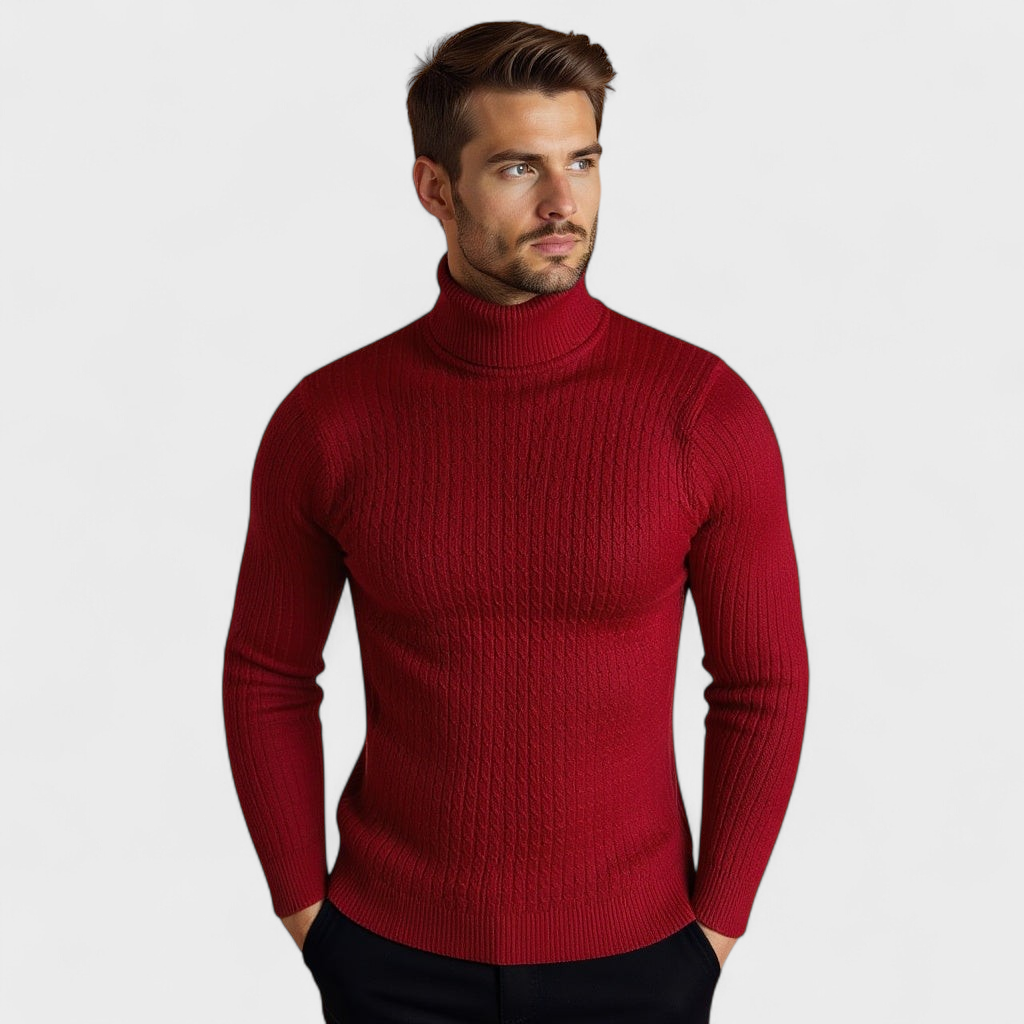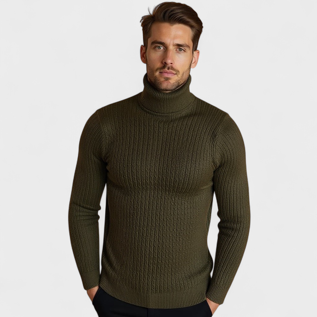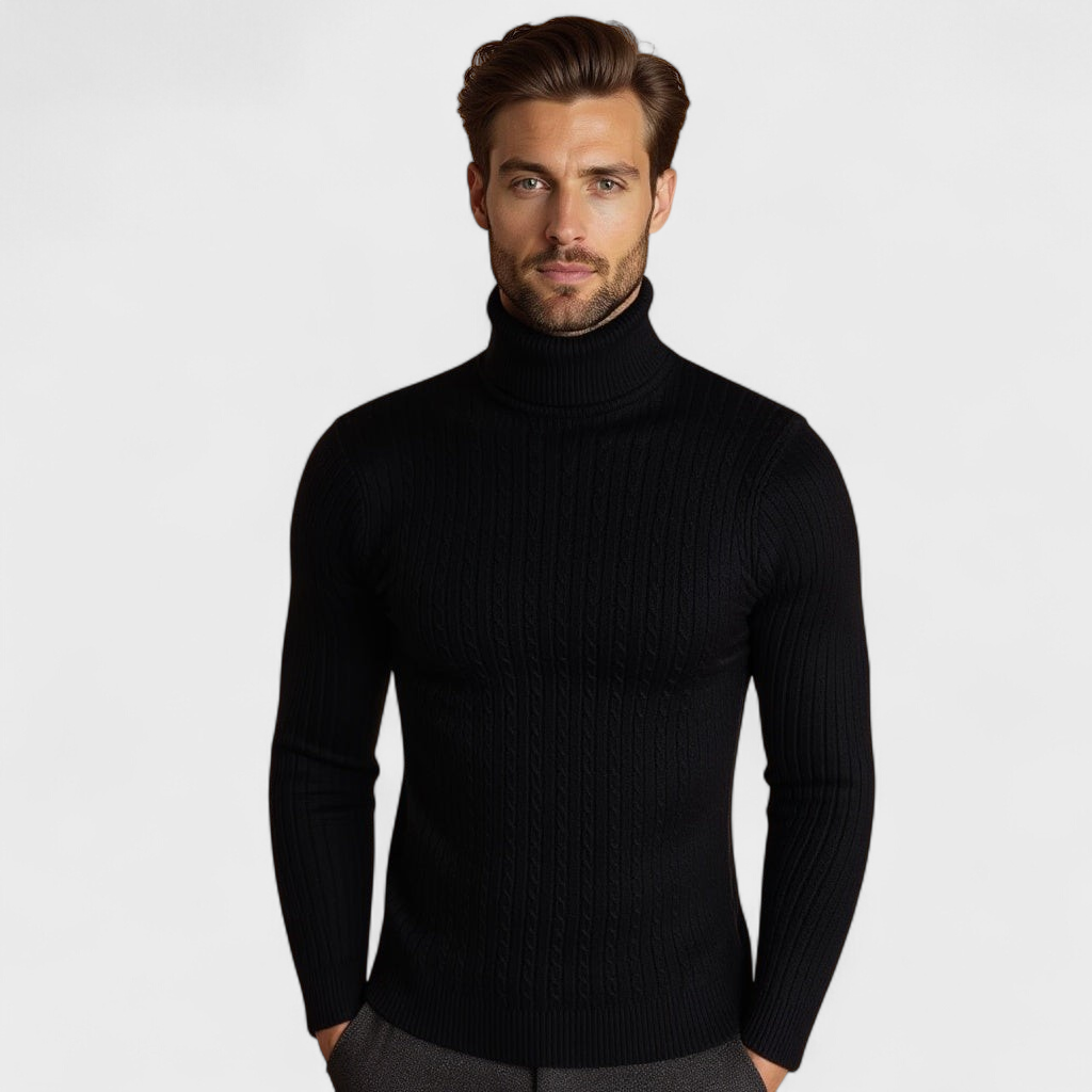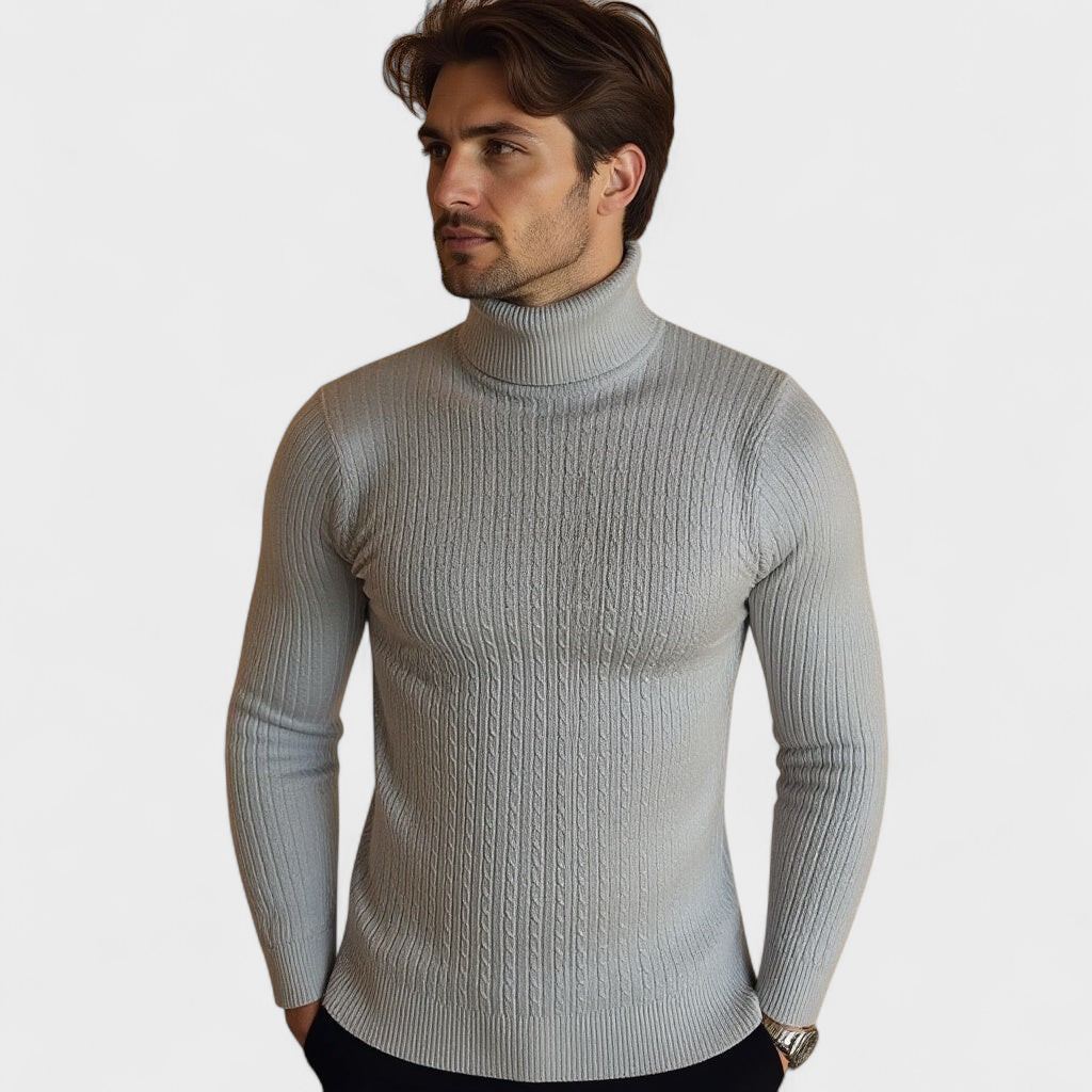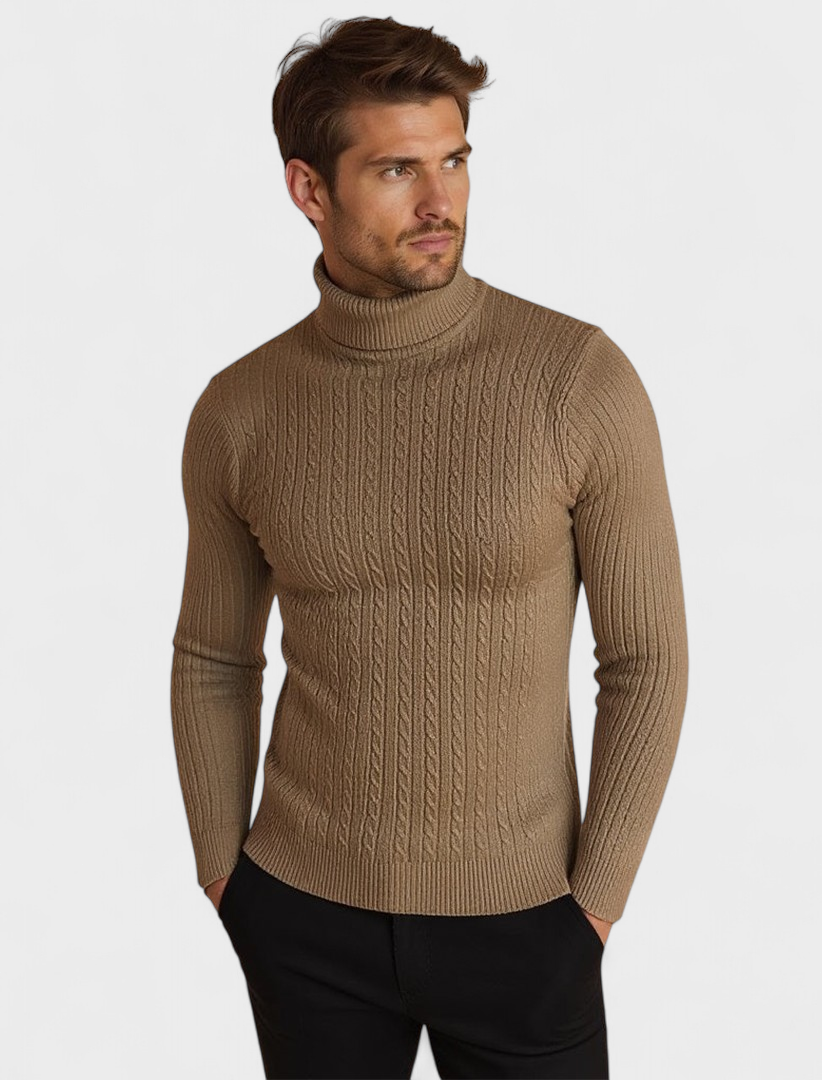 Izstrādāts tiem, kas novērtē gan stilu, gan komfortu, šis laika pārbaudītais apģērbs ir ar luksusa kabeladījuma struktūru un mājīgu ribotu apkakli, nodrošinot nepārspējamu eleganci visaukstākajos mēnešos.
