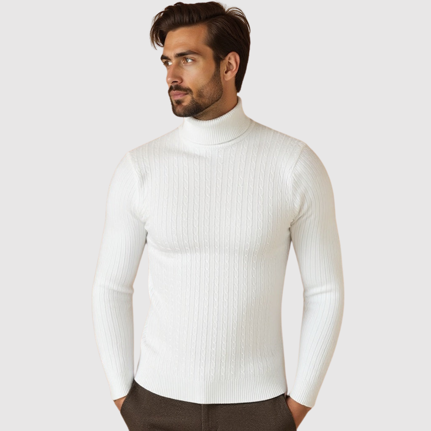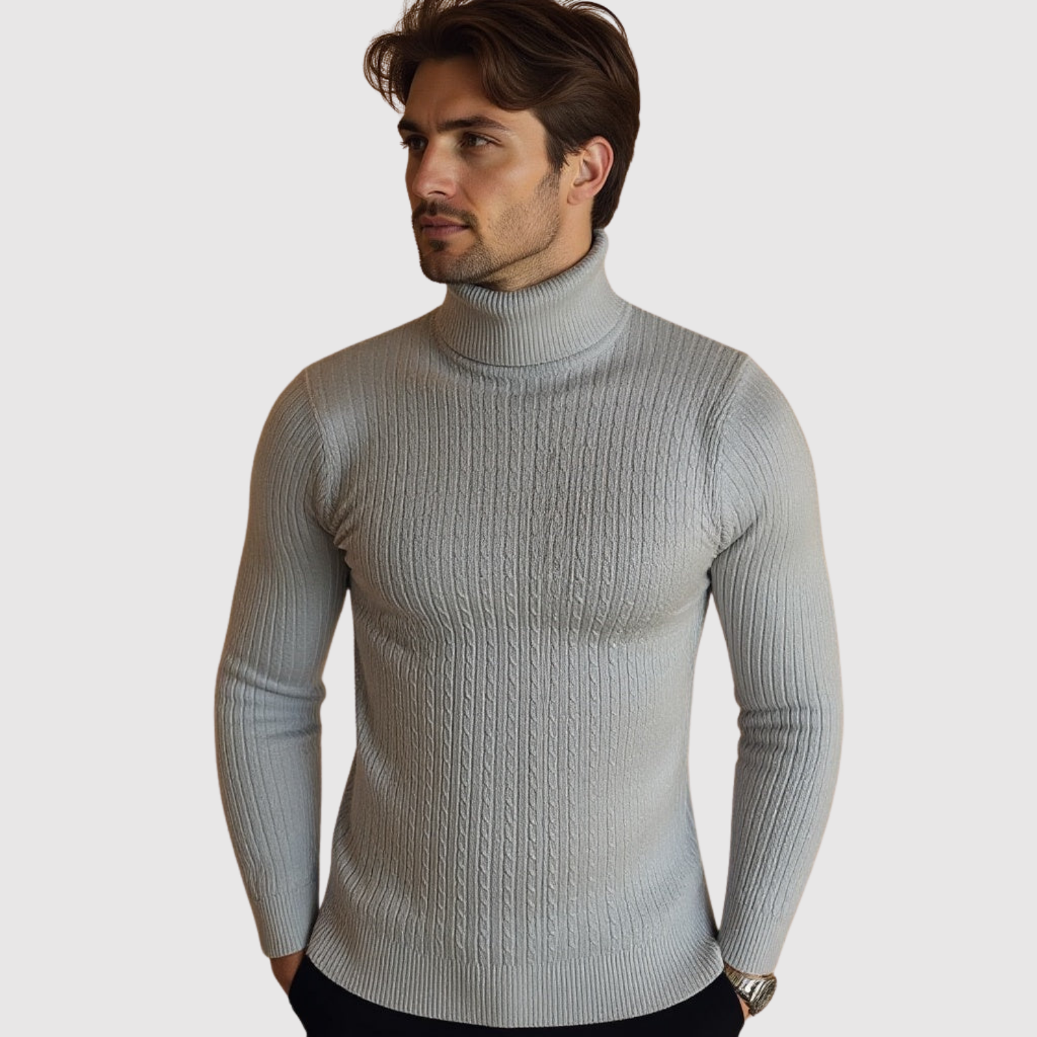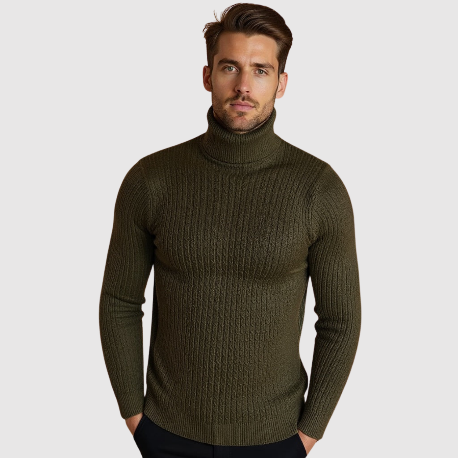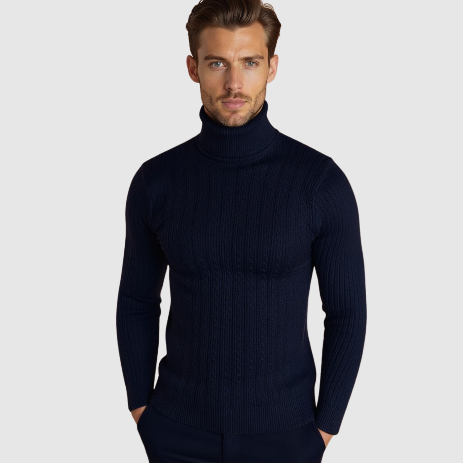 Izstrādāts tiem, kuri novērtē gan stilu, gan komfortu, šis laikmetīgais apģērbs ir ar greznu kabeladījuma struktūru un mājīgu ribotu apkakli, kas nodrošina nepārspējamu eleganci aukstākajos mēnešos.