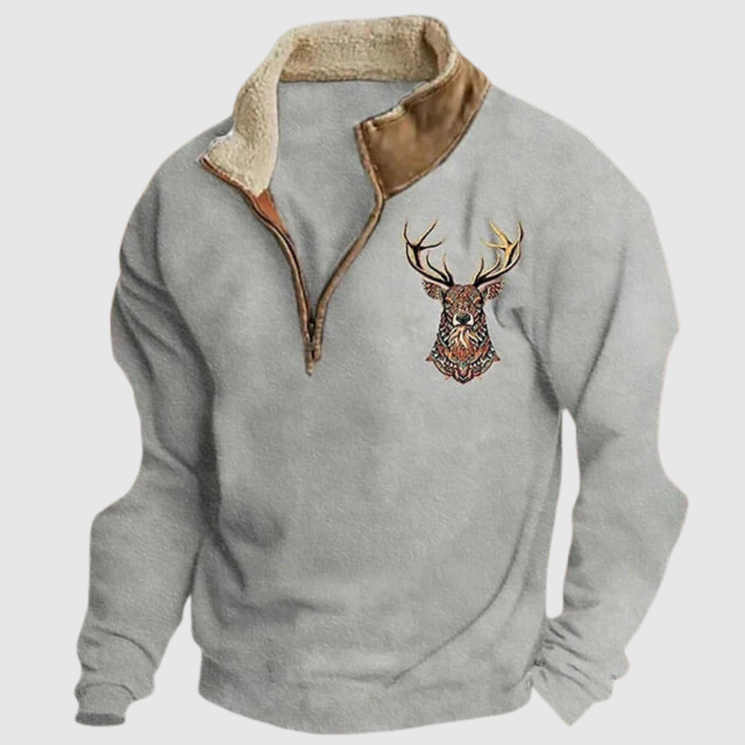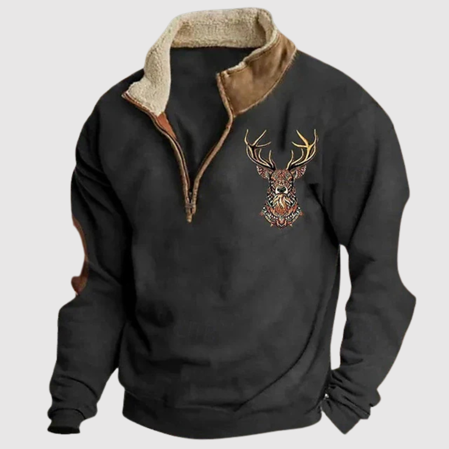 Klaus - Vīriešu džemperis ar staltbrieža detaļu un siltu flīsu