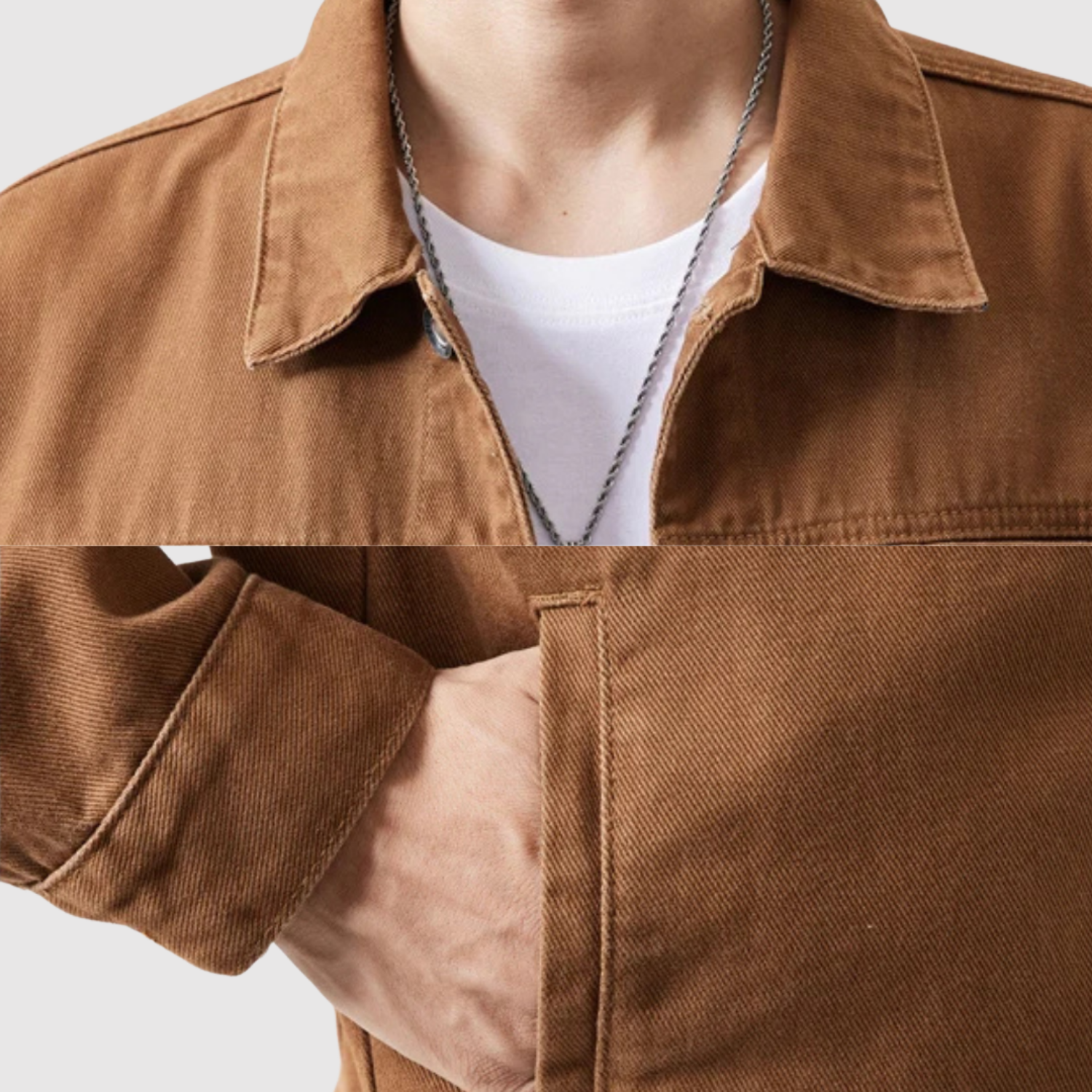 Warren jaka ir izgatavota no cieša, augstākās kvalitātes kokvilnas twill un tai ir klasiskā trucker forma, kas iedvesmota no amerikāņu darba apģērba. Dubultās krūšu kabatas, precīzās šuves un izturīgās metāla detaļas padara šo jaku gan stilīgu, gan izturīgu – ideāli piemērota kārtu valkāšanai visu gadu.