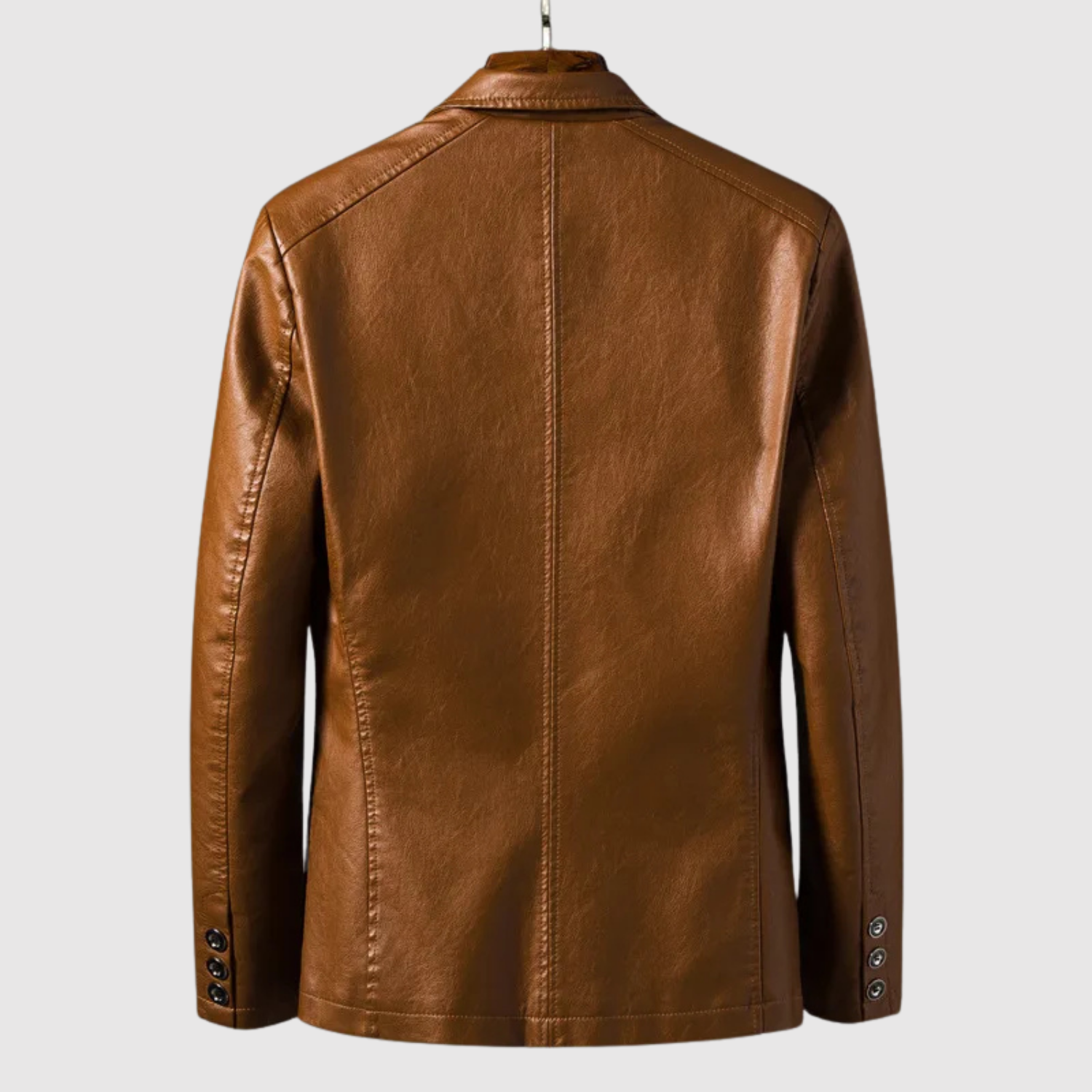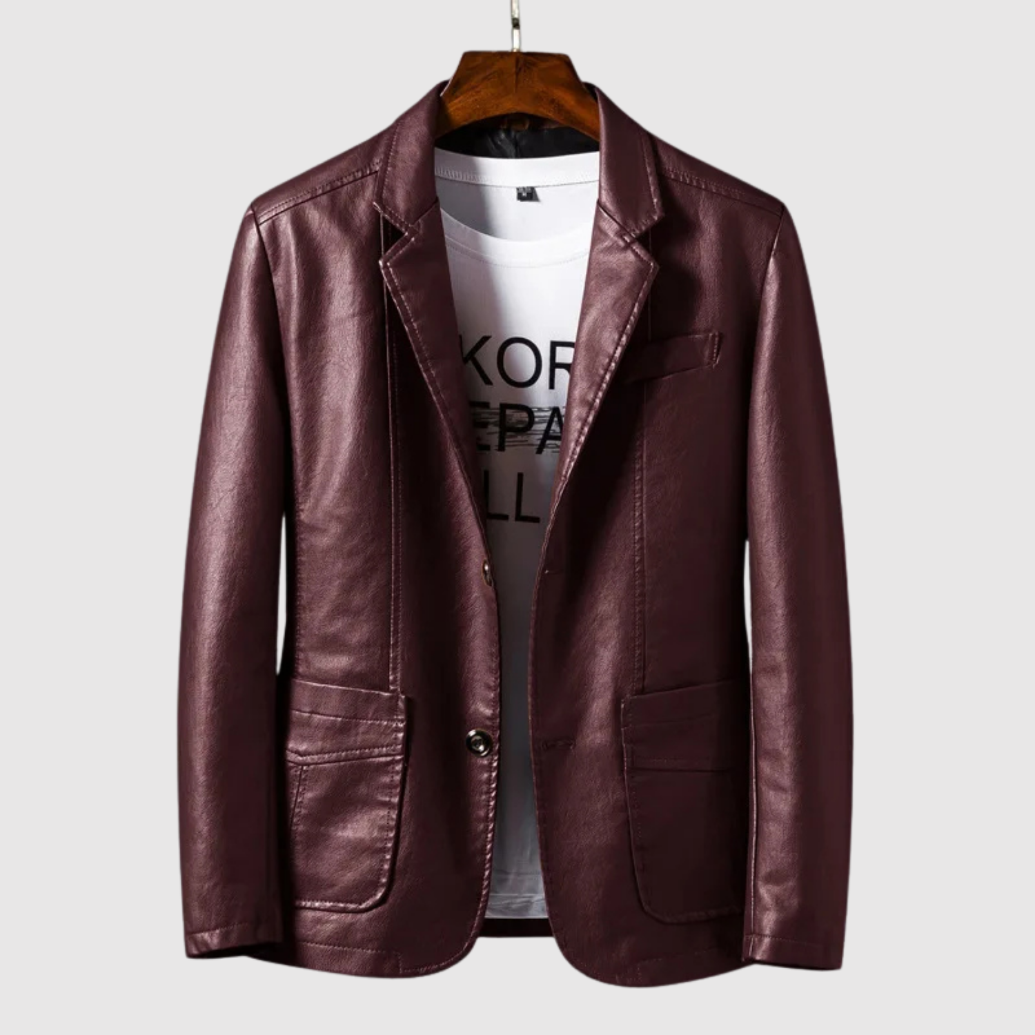 Šis mākslīgās ādas blazer apvieno strukturētu vīriešu šūšanu ar pārliecinātu attieksmi. Šaurs griezums, izteiksmīgi atlokņi un funkcionālas kabatas rada izskatu, kas līdzsvaro izsmalcinātu stilu un raupu raksturu – ideāli gan ikdienišķām, gan formālām reizēm.