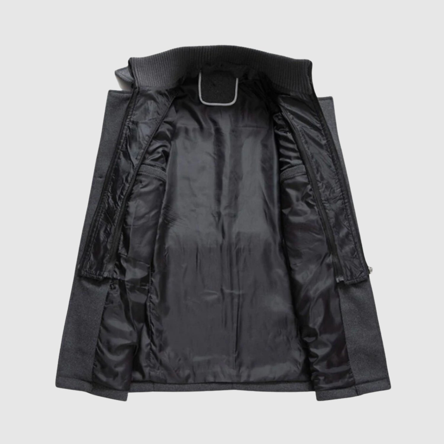 Šis mūsdienīgais vilnas mētelis apvieno mūsdienīgu dizainu ar izcilu funkcionalitāti. Ar sofistiskotu griezumu un rūpīgi izvēlētām detaļām tas ir ideāls izvēles tiem, kas meklē komfortu, eleganci un aizsardzību pret aukstumu. Ideāli piemērots gan formālām reizēm, gan izsmalcinātām pilsētas izskatām – šis mētelis paceļ katru apģērbu ar savu iespaidīgo klātbūtni.