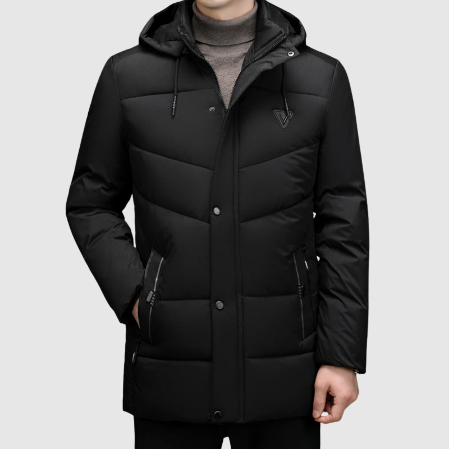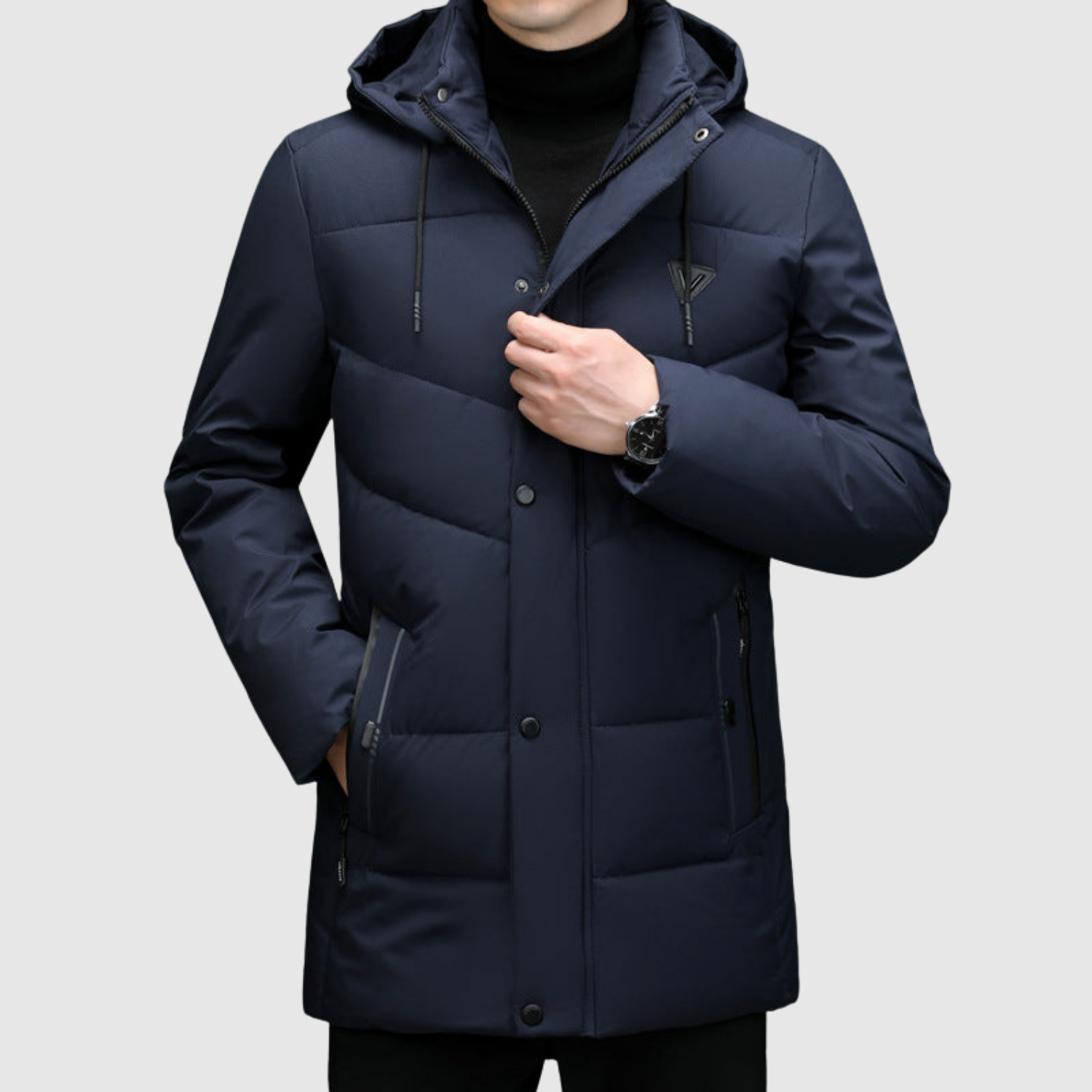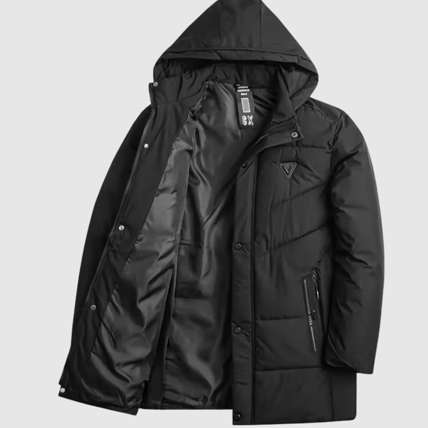 Šī ziemas jaka ir izstrādāta, lai apvienotu funkcionalitāti un mūsdienīgu izskatu. Polsterotā struktūra nodrošina uzticamu siltumu, kamēr vienkāršā piegriezuma forma garantē elegantu izskatu. Ideāli piemērota gan ikdienas lietošanai, gan formālākām reizēm ziemas sezonā.